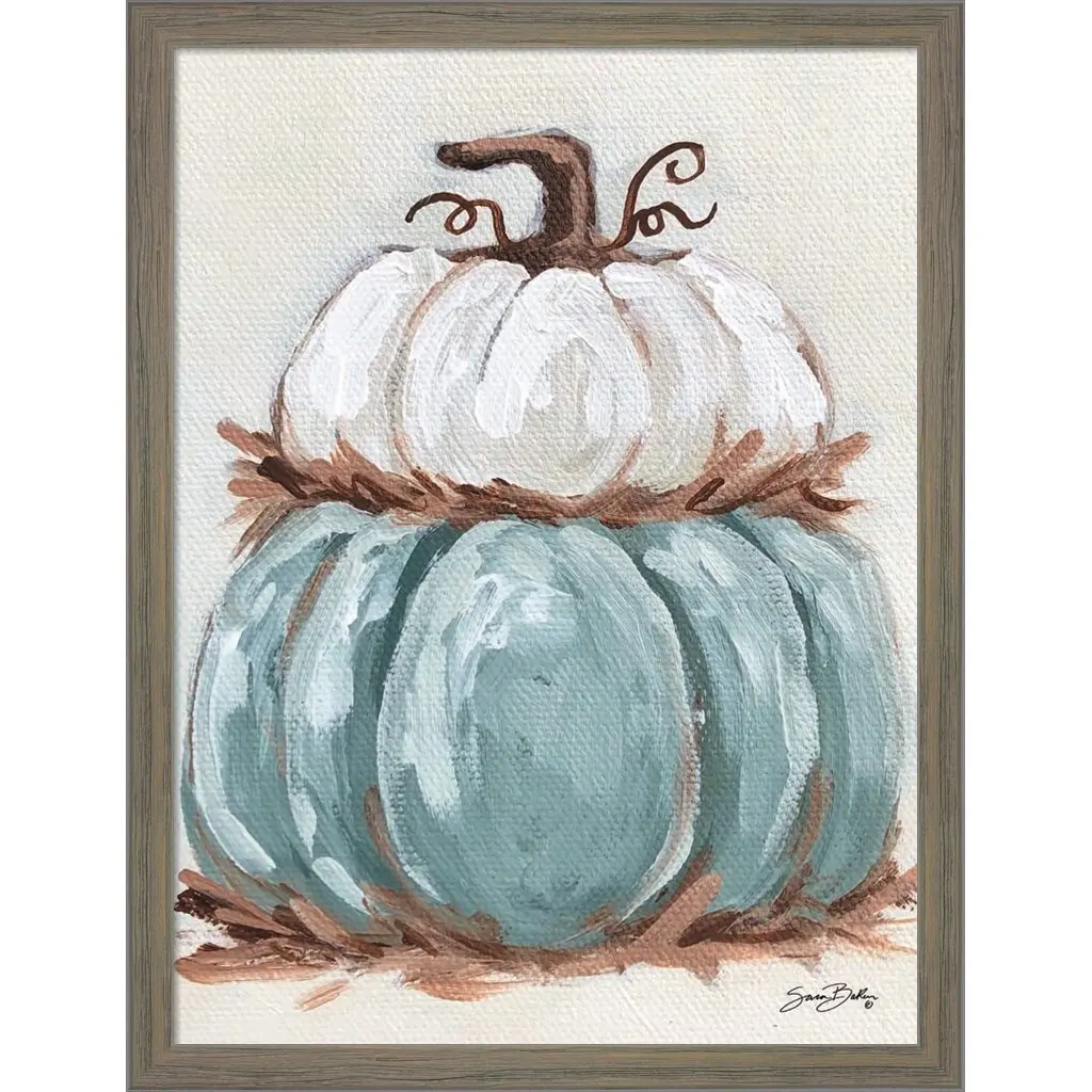Pumpkin Stack II by Sara Baker is a high quality piece of framed artwork. The finished size of this piece is 13" X 17". It has a Distressed Grey Knotty Wood frame and is finished with high quality Acrylic Plexiglass. 100% Satisfaction Guaranteed.