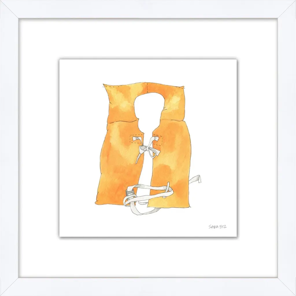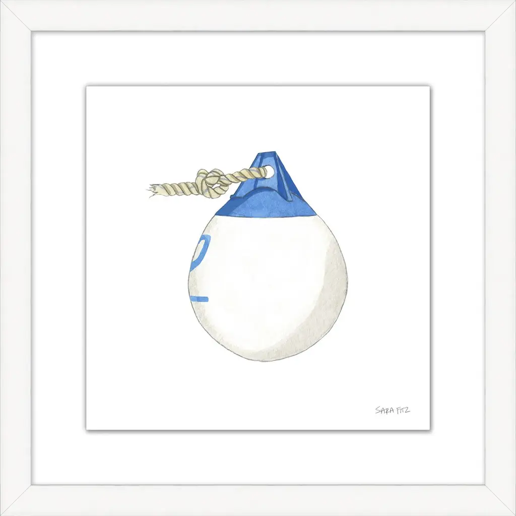 A buoy has never looked as charming as it does in this print of a Sara Fitz watercolor. Floated on a white mat within a wood frame, the giclée print arrives ready to hang.