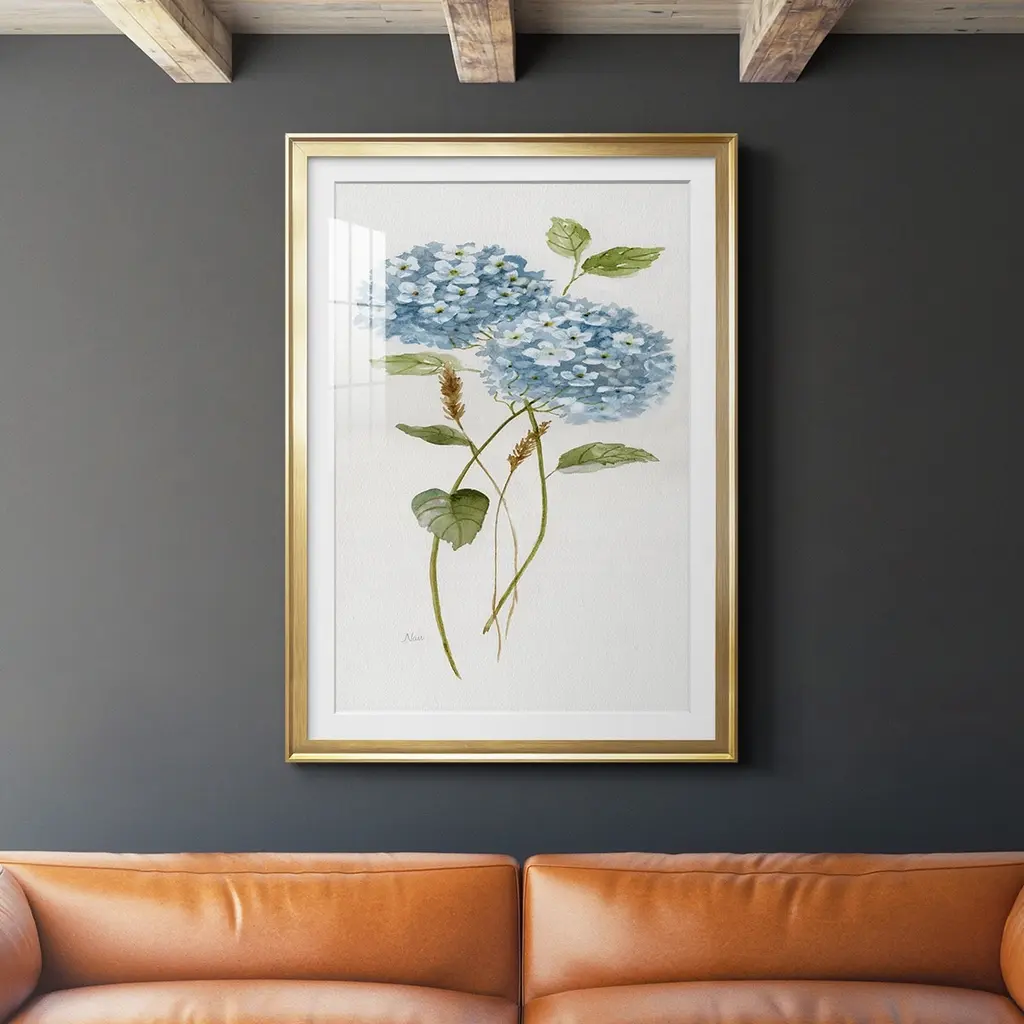 Relish the joys of spring year-round courtesy of Sara Fitz's delicate depiction of periwinkle hydrangeas in a vase. Floated on a white mat within a wood frame, the giclée print arrives ready to hang.
