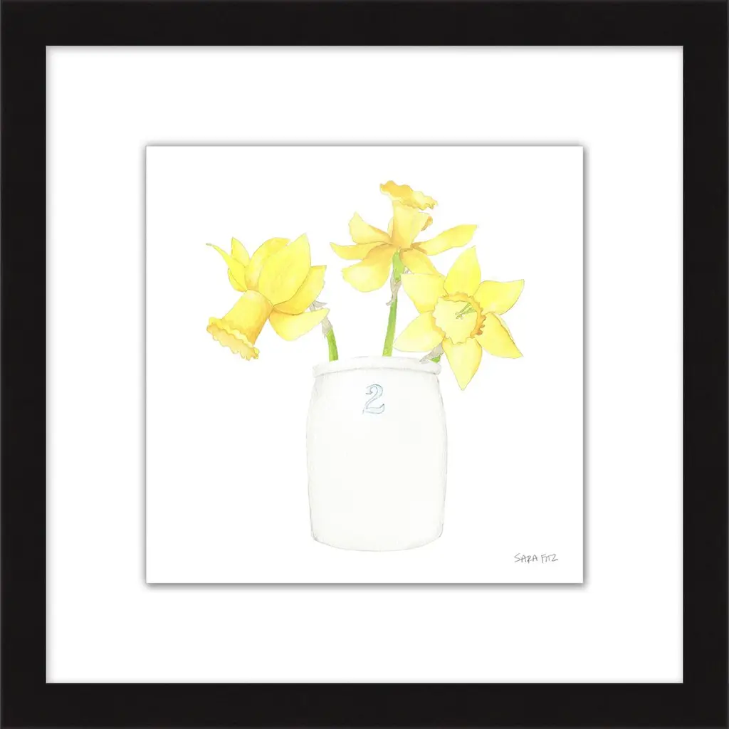 Relish the joys of spring year-round courtesy of Sara Fitz's graceful depiction of lilies in a pitcher. Floated on a white mat within a wood frame, the giclée print arrives ready to hang.