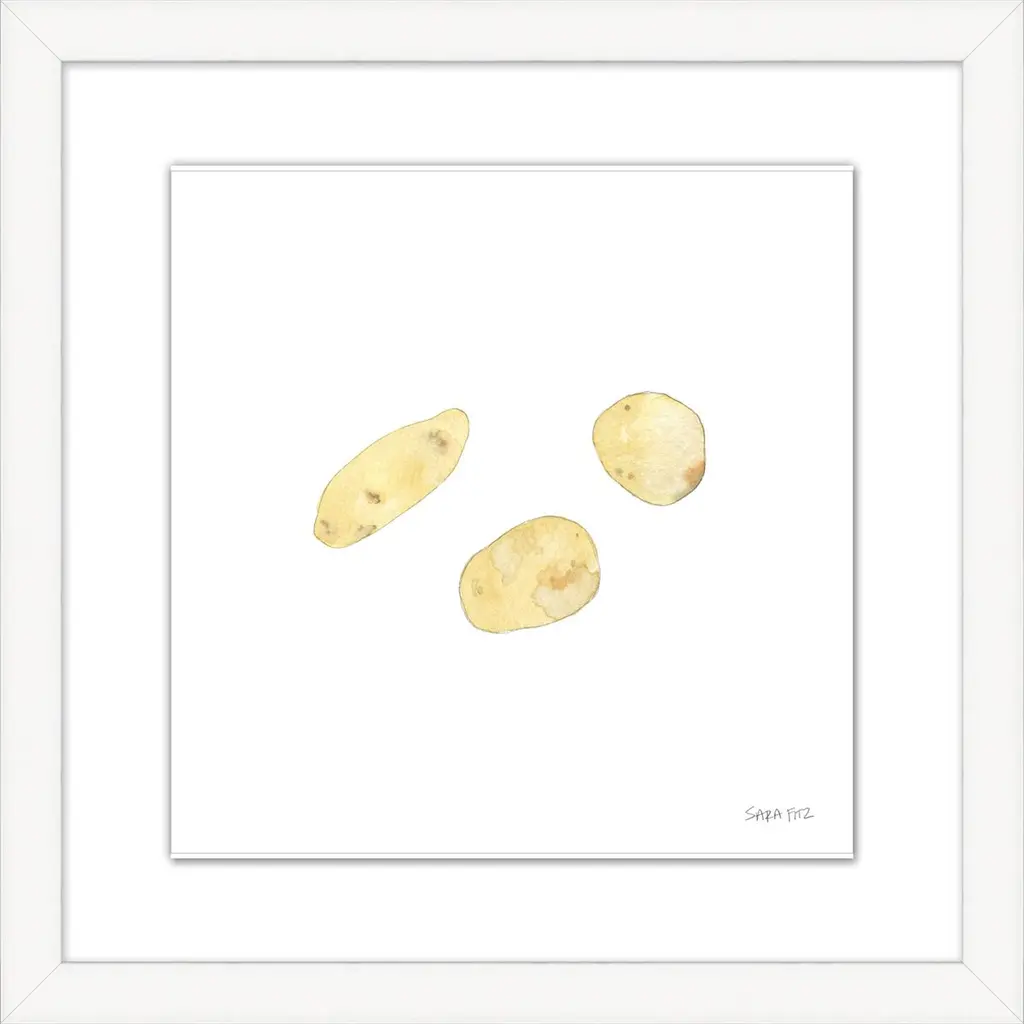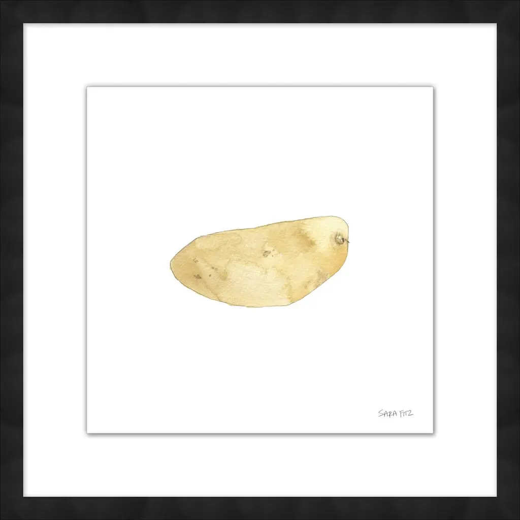 The humble spud has never looked as charming as it does in this print of a Sara Fitz watercolor. Floated on a white mat within a wood frame, the gicl�����e print arrives ready to hang.