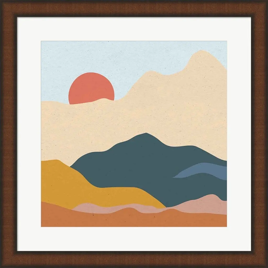 Mountainous II by Sara Zieve Miller is a high quality piece of framed artwork. The finished size of this piece is 19.75" X 19.75". It has a Slim Teak Espresso Brown Edges frame, is single matted and finished with high quality Glass. 100% Satisfaction Guaranteed.