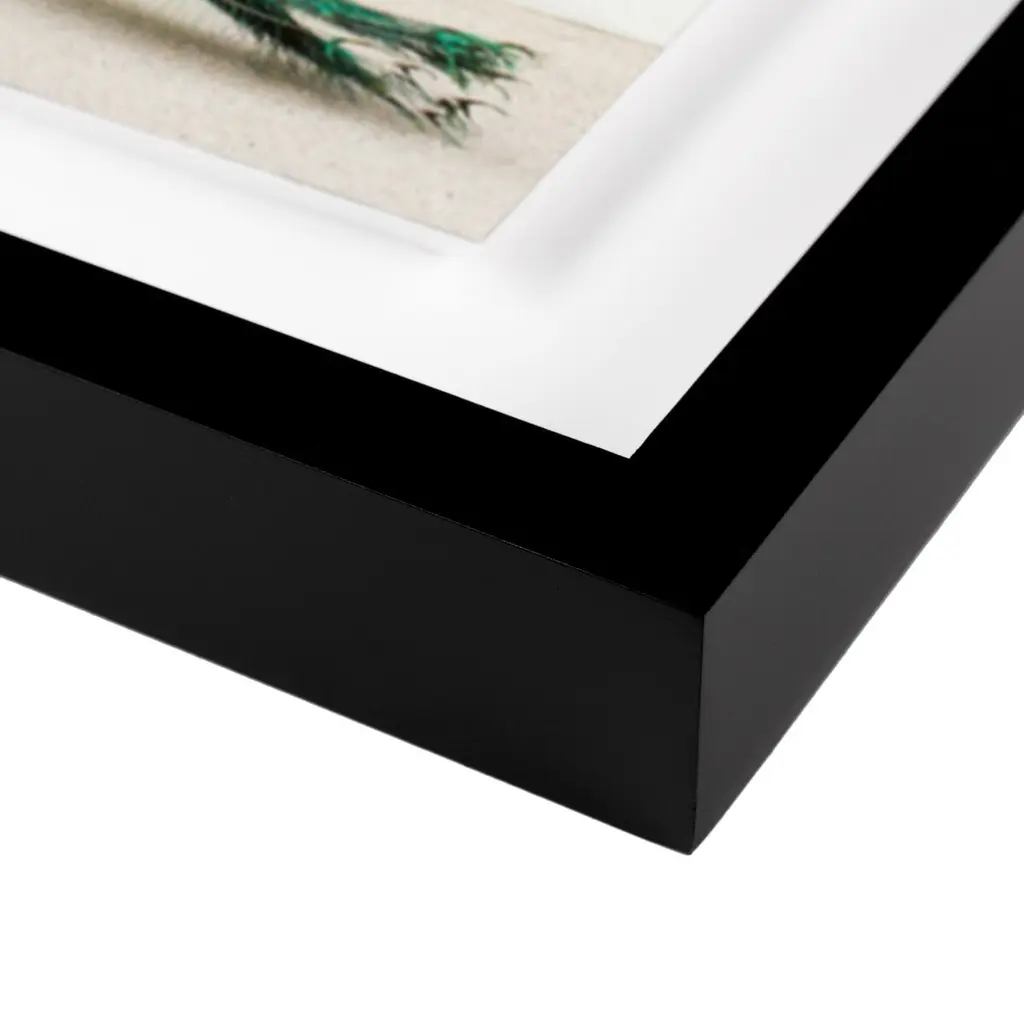 Sarah Ellefson's pristine capture of a vibrant peacock is printed on top-quality photo paper and framed within vertical grain oak.