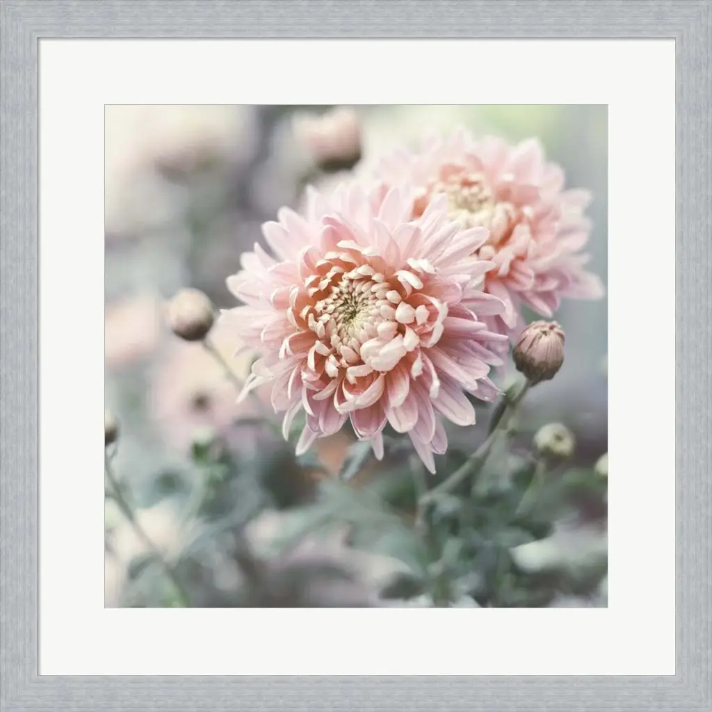 Muted Daisy by Sarah Gardner is a high quality piece of framed artwork. The finished size of this piece is 19.5" X 19.5". It has a Slim Platinum Silver frame, is single matted and finished with high quality Glass. 100% Satisfaction Guaranteed.