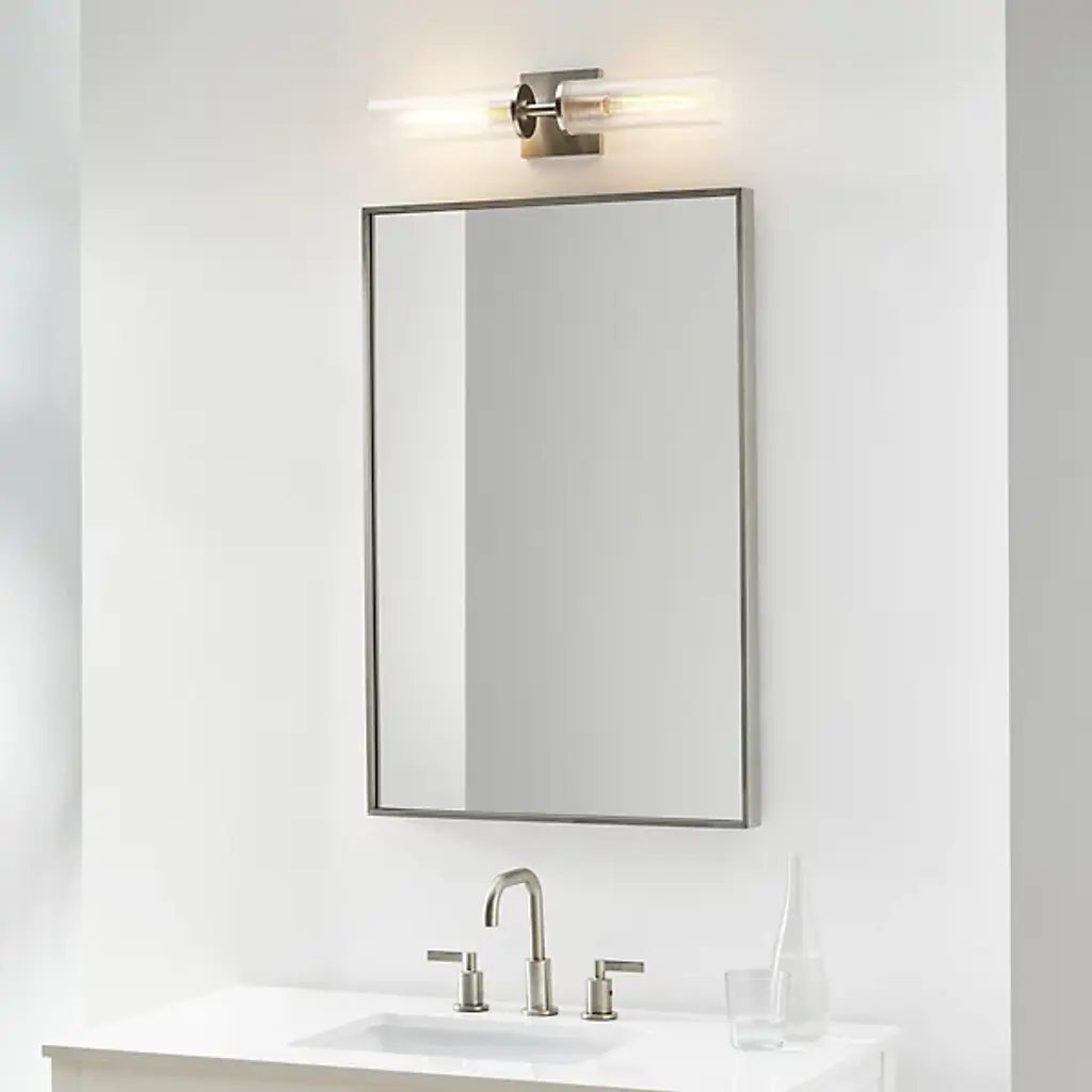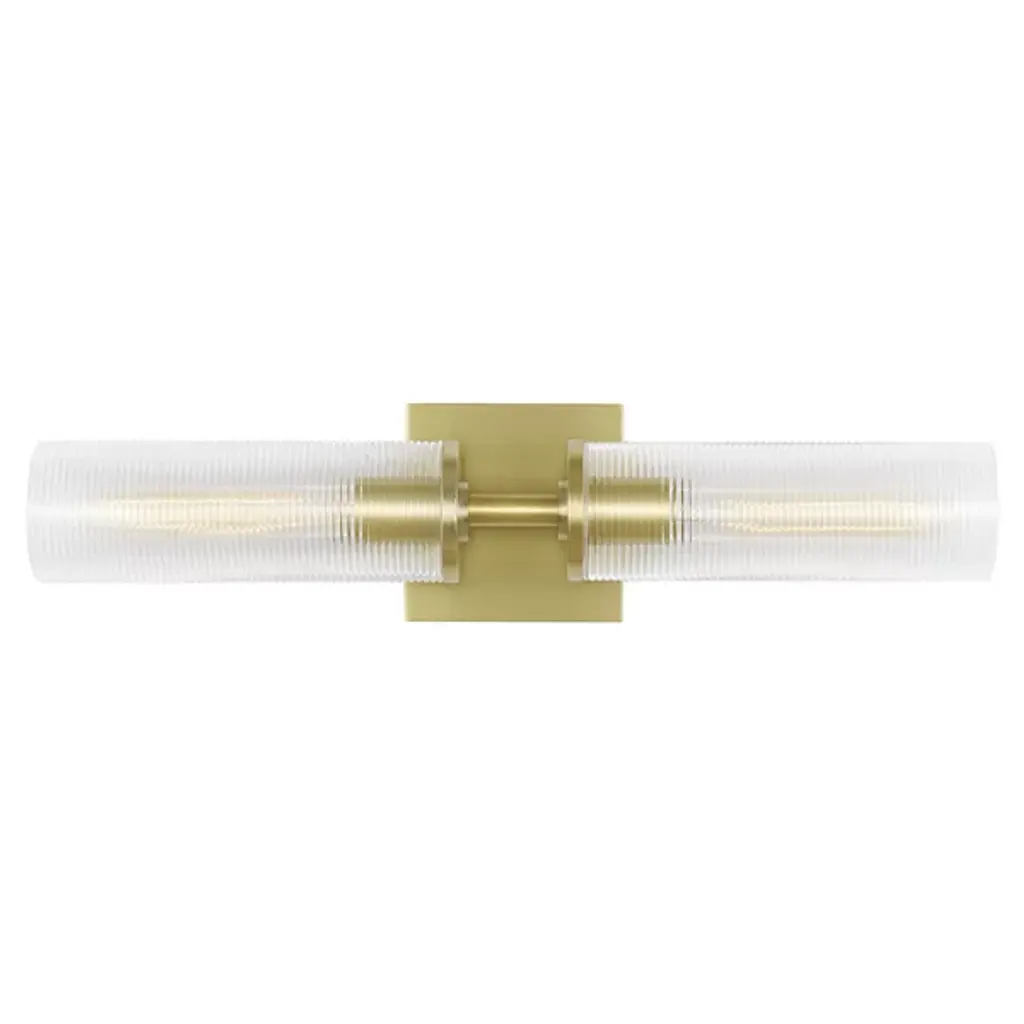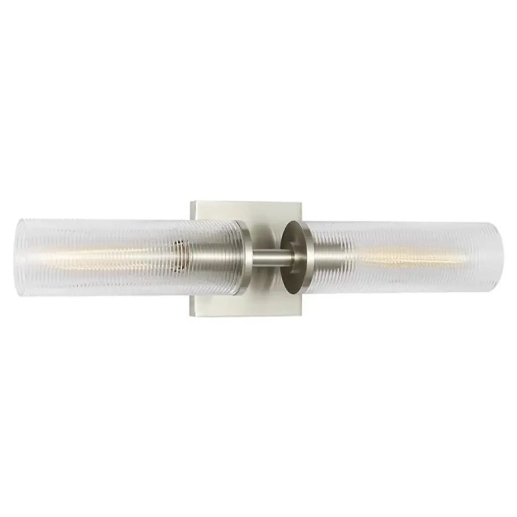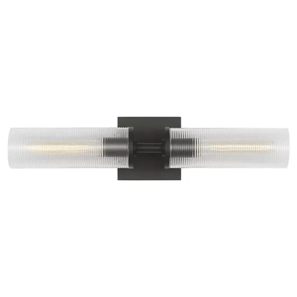 The Sarita Vanity Light from Visual Comfort Studio pairs cylindrical ribbed glass with a structured square backplate, reflecting Drew & Jonathan Scott's attention to textural contrast and clean lines. The sconce effectively eliminates harsh glare through the ribbed glass texture. It provides substantial illumination for bathroom mirrors and hallway applications, while its balanced proportions make it suitable for various room sizes. This fixture’s steel construction ensures stability and durability in high-traffic areas. It brings subtle industrial inspiration to residential settings through functional design and refined details.