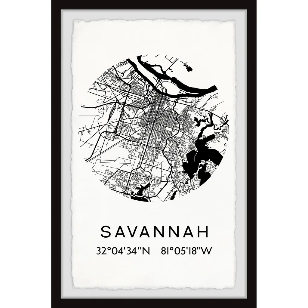 Put your favorite city on display with this textual print of Savannah, Georgia and its coordinates. Proudly printed in the USA, this piece is printed on high quality archive paper and professionally hand-framed. With wall-mounting hooks included, this artful accent is ready to hang up as soon as it reaches your front door. • Top quality Giclee print on high resolution Archive Paper • Hand cut deckled edges • High quality durable non-warping frame • Finished under shatter resistant plexiglass • Arrives ready to hang • Includes a certificate of authenticity • Printed in the USA