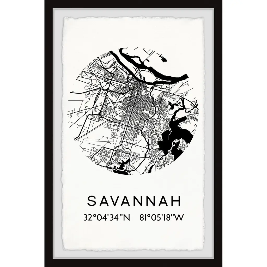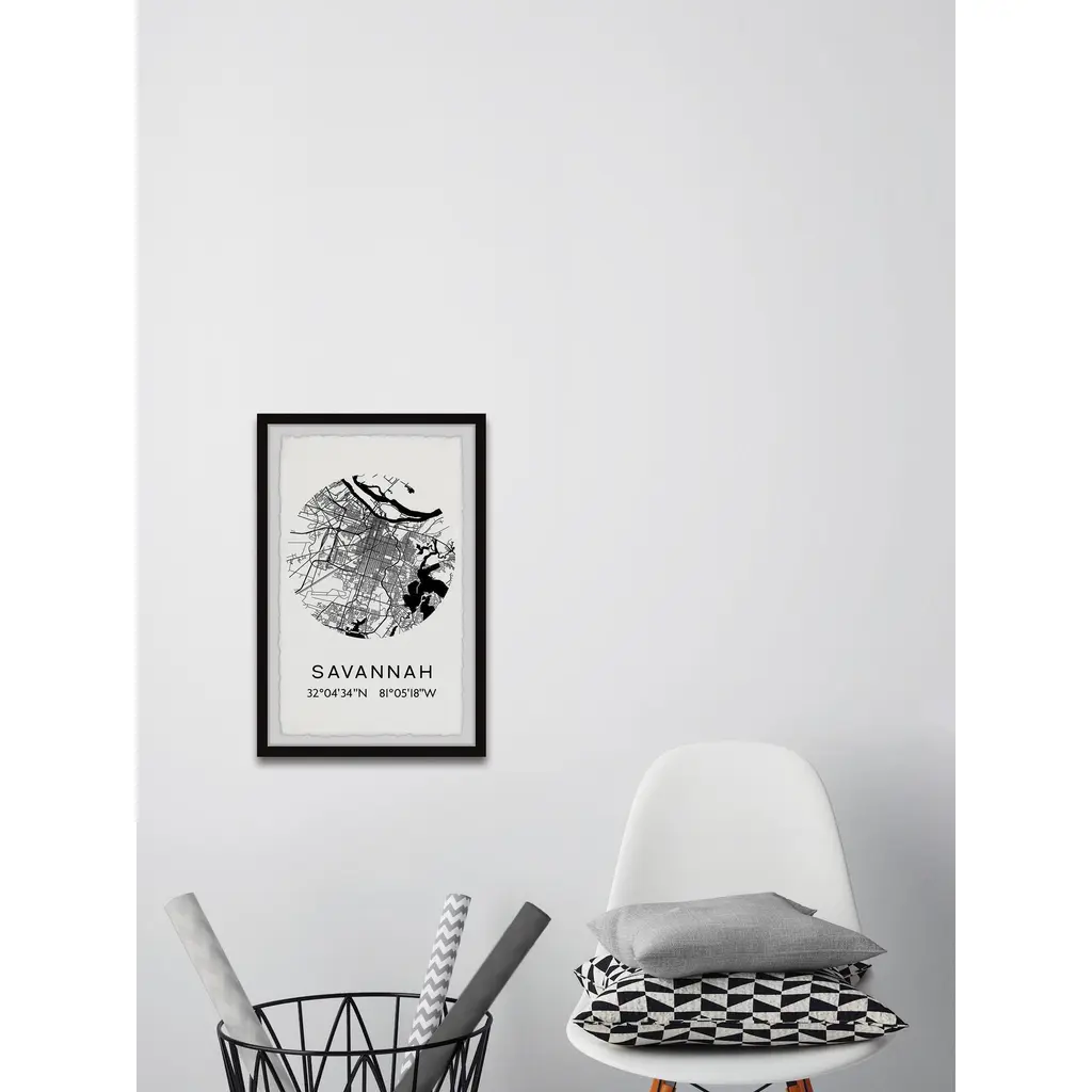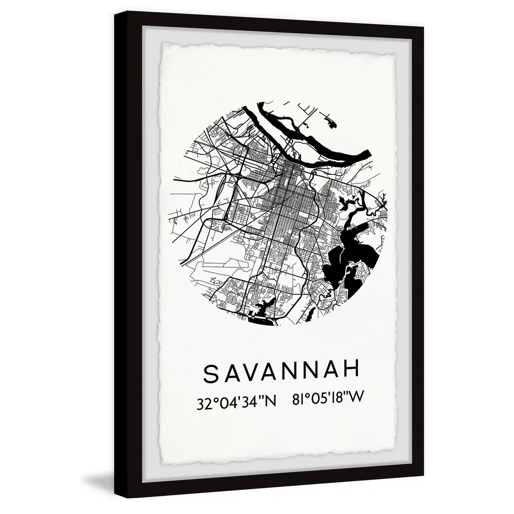 Put your favorite city on display with this textual print of Savannah, Georgia and its coordinates. Proudly printed in the USA, this piece is printed on high quality archive paper and professionally hand-framed. With wall-mounting hooks included, this artful accent is ready to hang up as soon as it reaches your front door. • Top quality Giclee print on high resolution Archive Paper • Hand cut deckled edges • High quality durable non-warping frame • Finished under shatter resistant plexiglass • Arrives ready to hang • Includes a certificate of authenticity • Printed in the USA