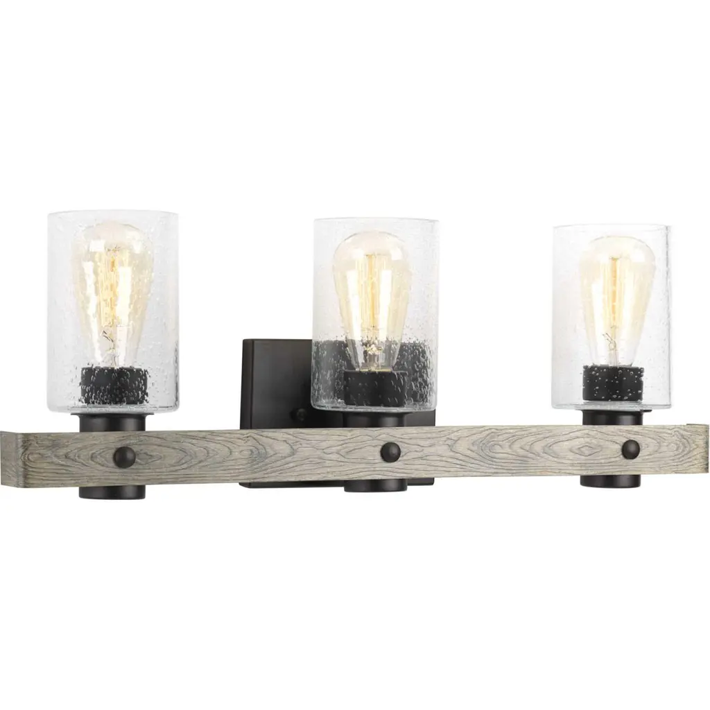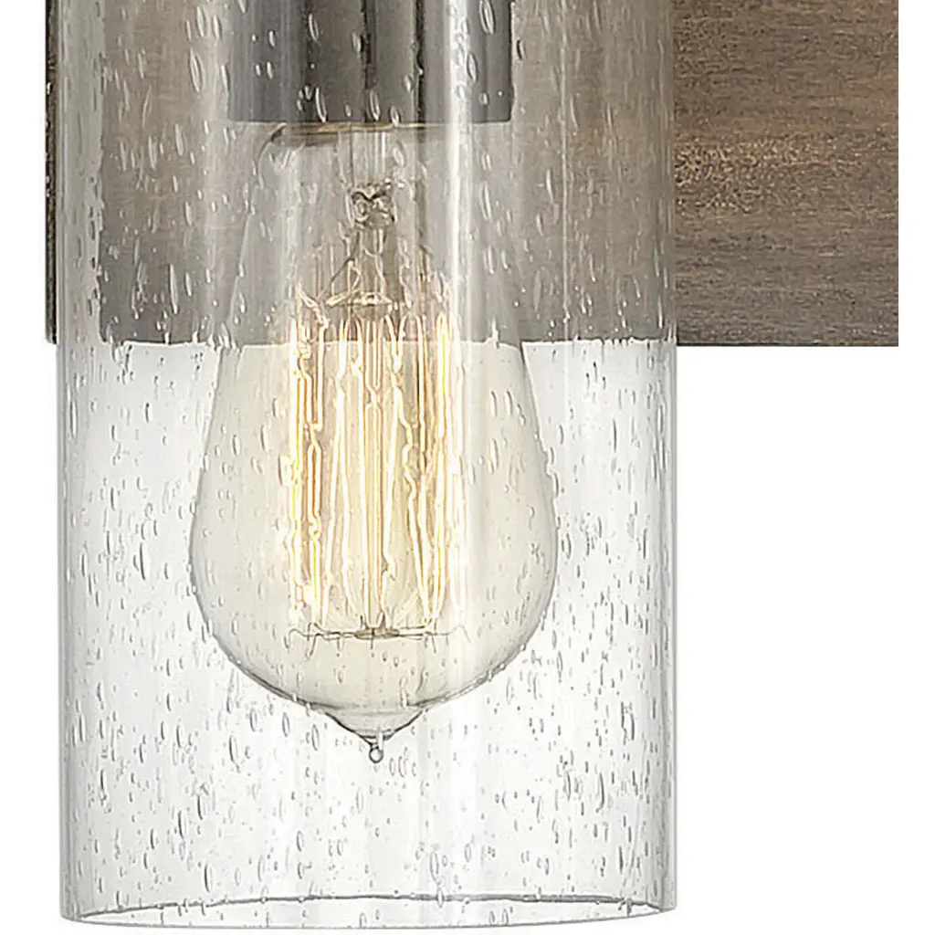 The fresh, rustic design of the Sawyer collection will enhance any living experience with a warm, cozy ambiance. The Aged Zinc finish with Distressed Black accents or Sequoia finish with Iron Rust accents paired with clear seedy glass offer a farmhouse chic style.