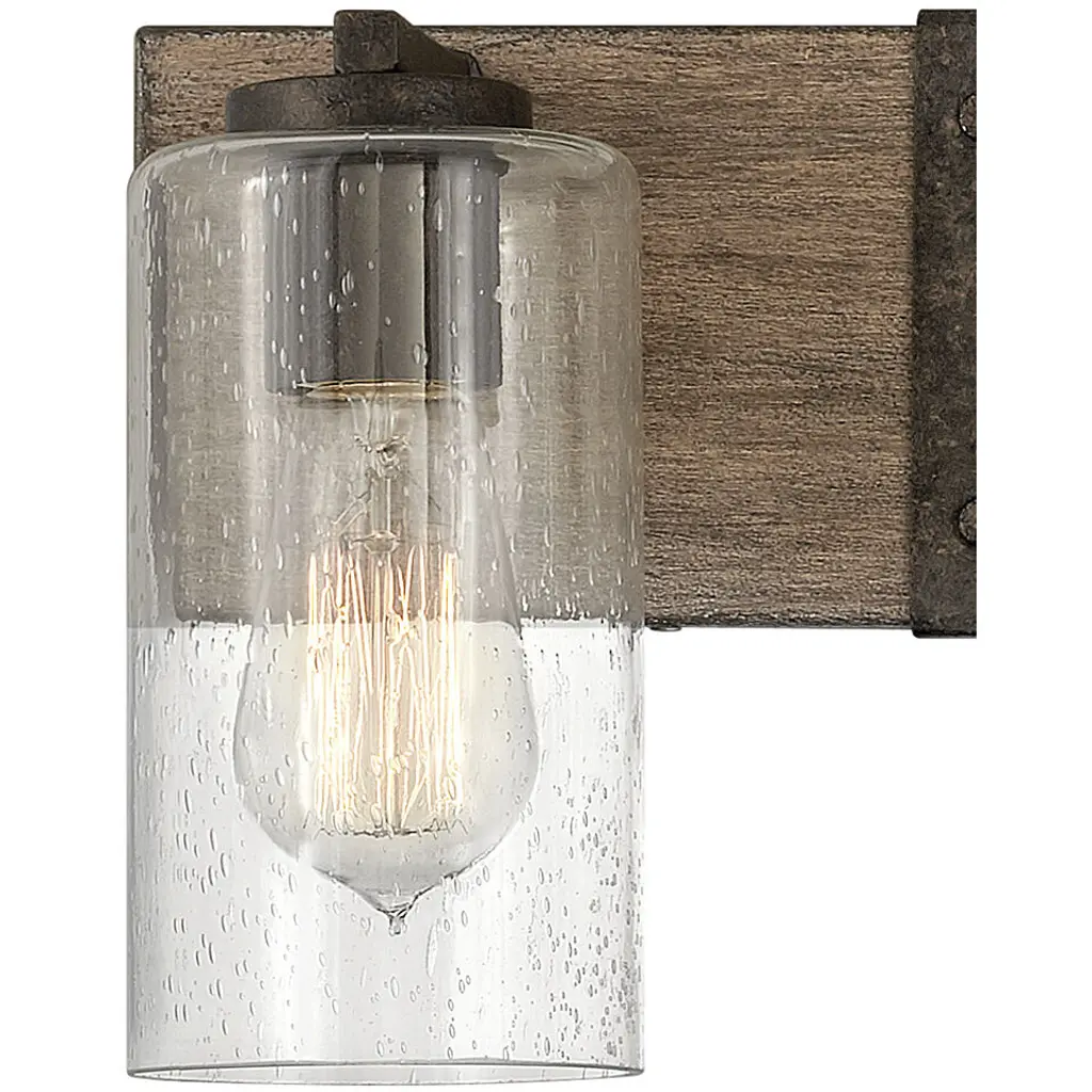 The fresh, rustic design of the Sawyer collection will enhance any living experience with a warm, cozy ambiance. The Aged Zinc finish with Distressed Black accents or Sequoia finish with Iron Rust accents paired with clear seedy glass offer a farmhouse chic style.