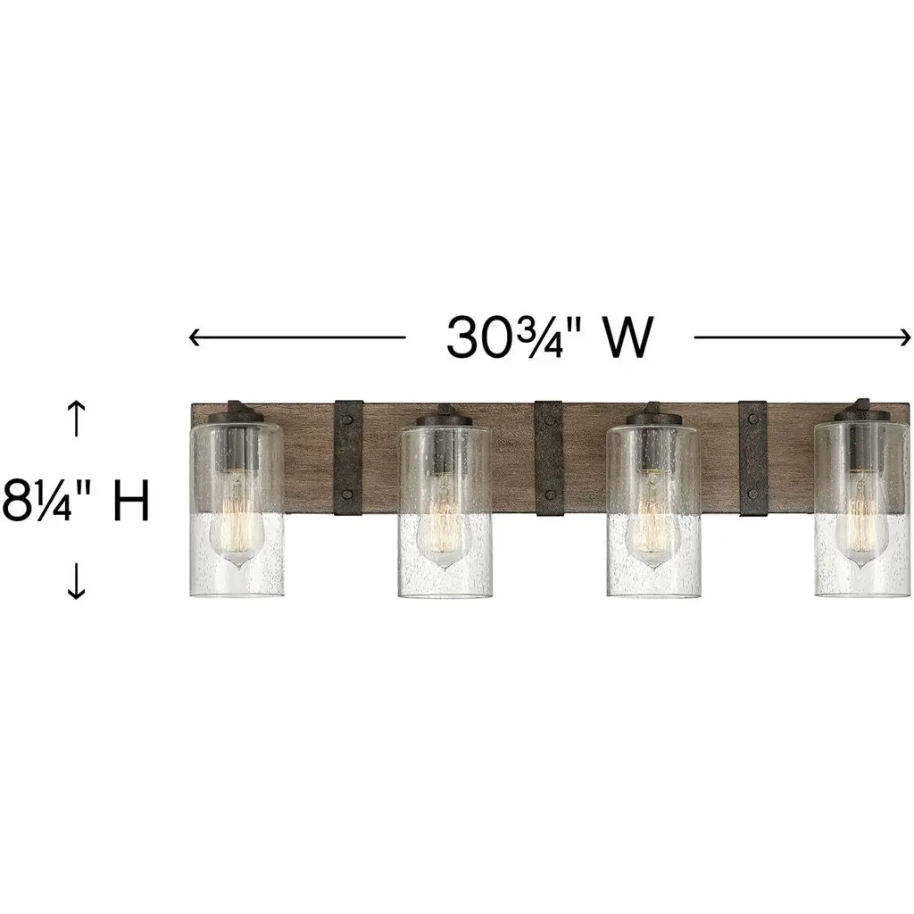 Sawyer 4 Light 30.75 Inch Sequoia With Iron Rust Vanity Light Wall Light