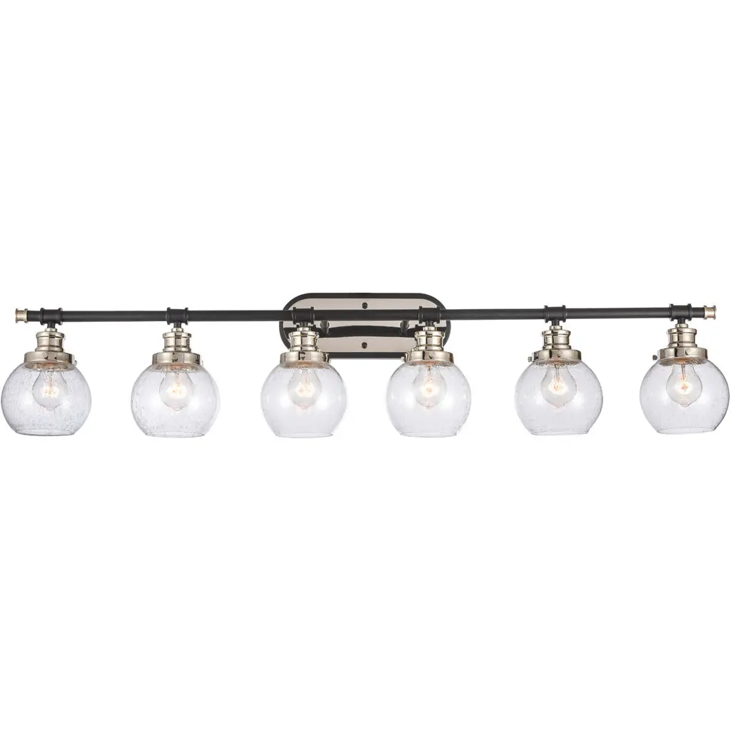 Saybrook 6 Light 47.75 Inch Black Polished Nickel Bath Vanity Light Wall Light In Matte White Glass