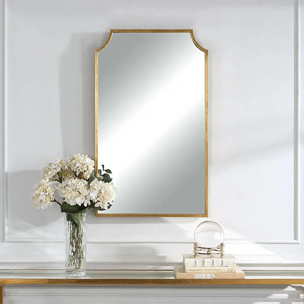 Gracefully curved corners and beautiful gold leaf finish, this metal frame will enhance any room. Sized perfectly for an entryway or over a bathroom vanity. Antique, vintage, designer floor samples & new products from one of the hottest Retail and To The Trade Home Furnishings showrooms in the country. Located in Chicago's chic Roscoe Village, Kenneth Ludwig Chicago carries the best offerings in furniture, accessories, artwork & textiles. Offerings are always fresh & always inspiring! Quite often ( due to a discontinued style, fabric or frame ) they must sell off their showroom floor samples. You receive first quality pieces at amazing prices. Check back weekly for new inventory added.