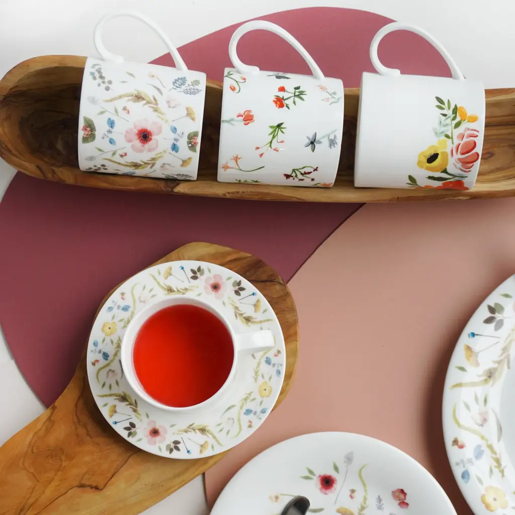 In collaboration with Brittany Jepsen, the Scandinavian Floral Collection was inspired by the traditional rosemaling painting technique that is common in Scandinavia. Designer Brittany Jepsen took inspiration from the natural colors and shapes of the peninsula. The colors of nature from the Scandinavian Collection by Twig New York.Ideal for beveragesOne set of two per boxFine Bone China with hand applied decalScandinavian Floral Collection