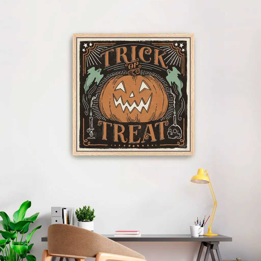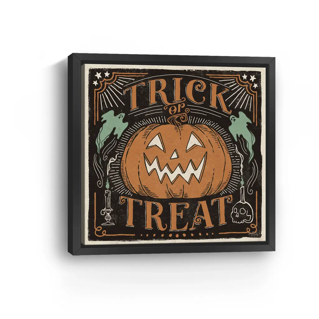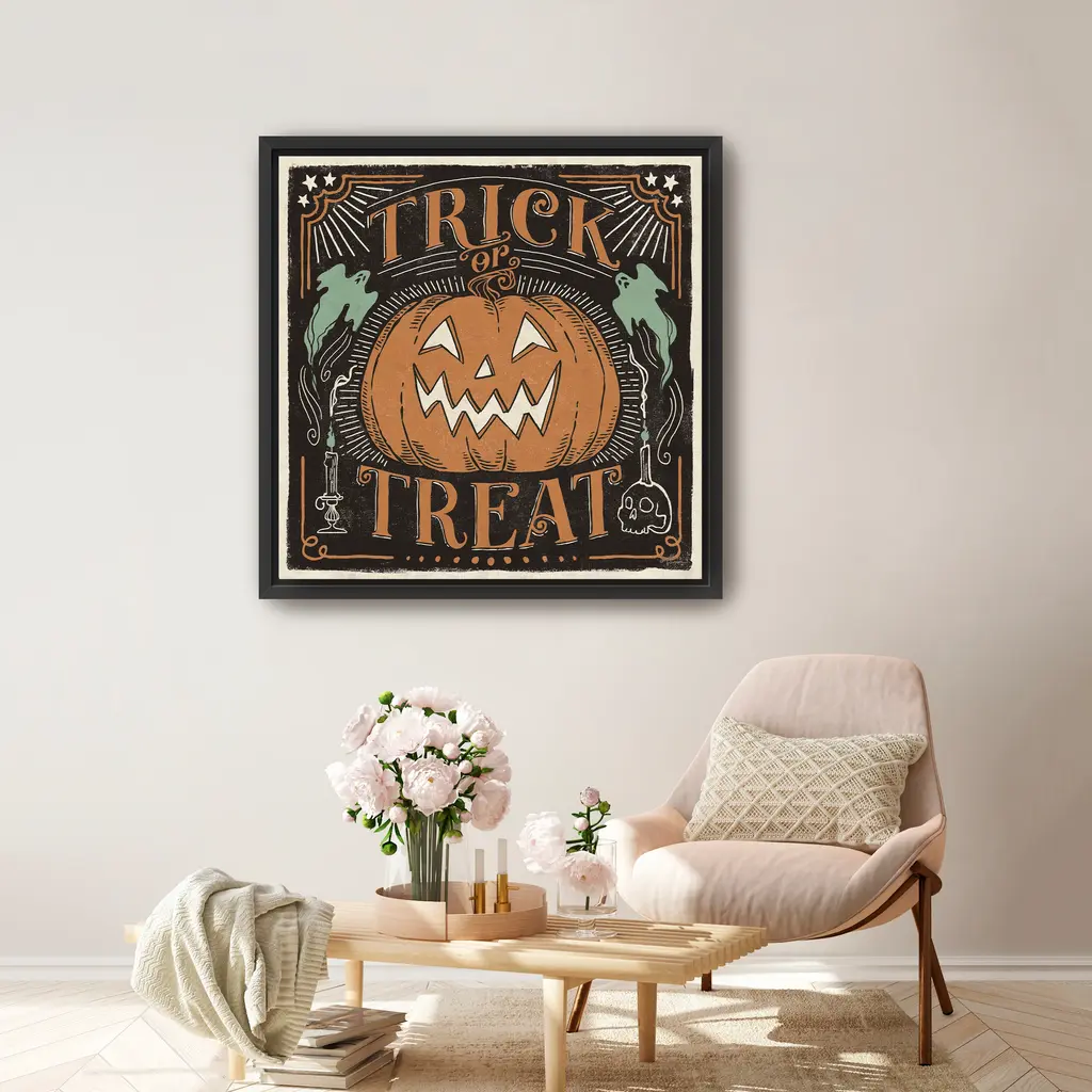 Set against a backdrop of midnight black, this grinning jack-o'-lantern flickers with eerie warmth. Its carved smile pierces the gloom, evoking classic Halloween chills. Our Gallery Wrap Canvas Prints are proudly assembled with high quality materials in California, USA. Each piece is printed on a thick, archival grade canvas using Giclee technology. It is then hand-stretched by our experienced artisans over solid wood bars, which will not warp over time. The final product is a piece personally crafted for you to confidently display on your wall. Care and Assembly: Ensure that the location of your piece has little to no exposure to heat, sunlight, and moisture. Wipe clean, only if needed. Each piece includes a sawtooth hanger to hang on your wall horizontally.