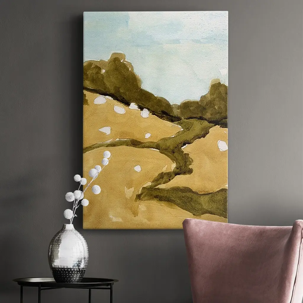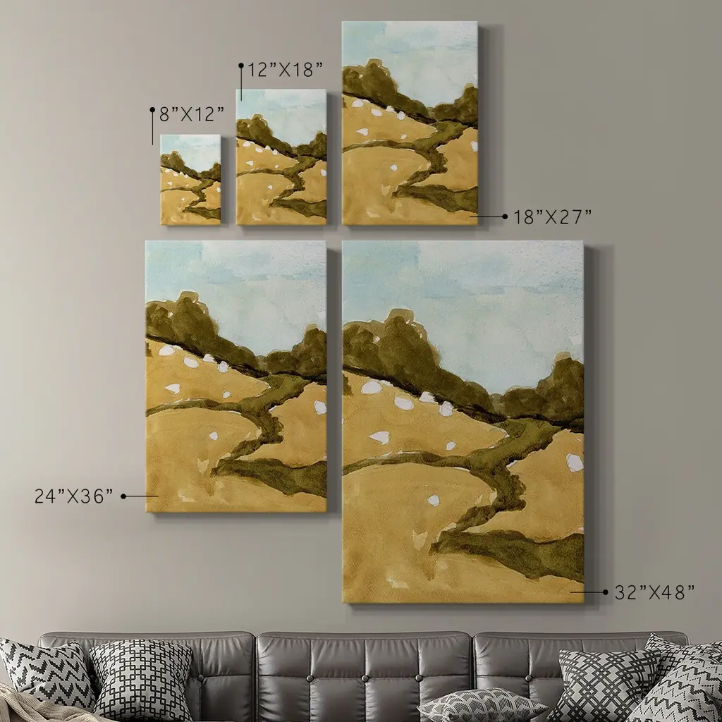 Scattered Sheep II Premium Gallery Wrapped Canvas - Ready to Hang A premium hand stretched gallery wrapped canvas print created to last. Featuring a beveled a solid wood stretcher bar, each piece comes ready to hand 6 SIZES AVAILABLE 8''X12'' - Overall Size 12''X18'' - Overall Size 18''X27'' - Overall Size 24''x36'' - Overall Size 32''x48'' - Overall Size 40''x60'' - Overall Size Each piece is made to order. Built to Last Each piece comes ready to hang Solid wood stretcher Fade and Water resistant Made domestically