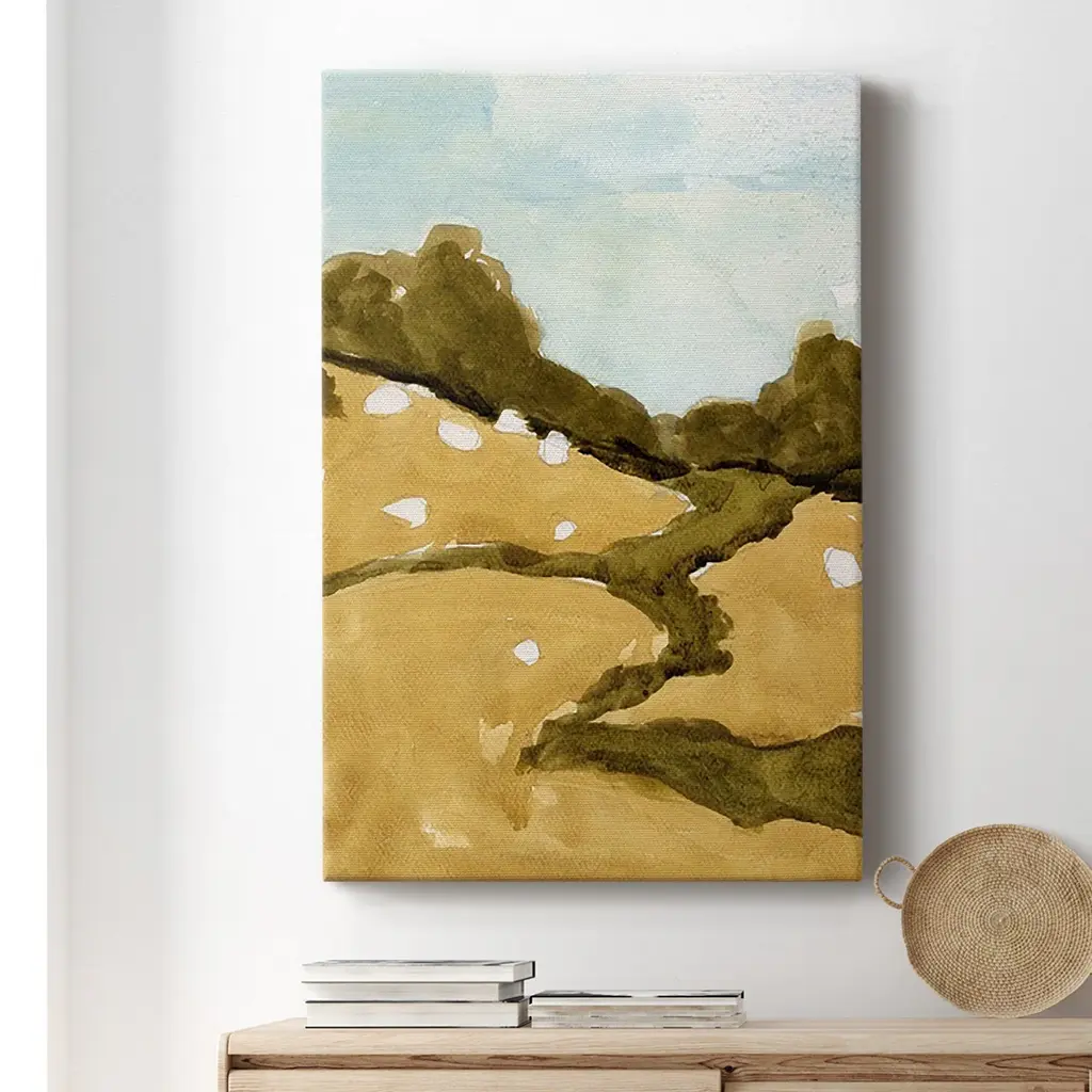 Scattered Sheep II Premium Gallery Wrapped Canvas - Ready to Hang A premium hand stretched gallery wrapped canvas print created to last. Featuring a beveled a solid wood stretcher bar, each piece comes ready to hand 6 SIZES AVAILABLE 8''X12'' - Overall Size 12''X18'' - Overall Size 18''X27'' - Overall Size 24''x36'' - Overall Size 32''x48'' - Overall Size 40''x60'' - Overall Size Each piece is made to order. Built to Last Each piece comes ready to hang Solid wood stretcher Fade and Water resistant Made domestically
