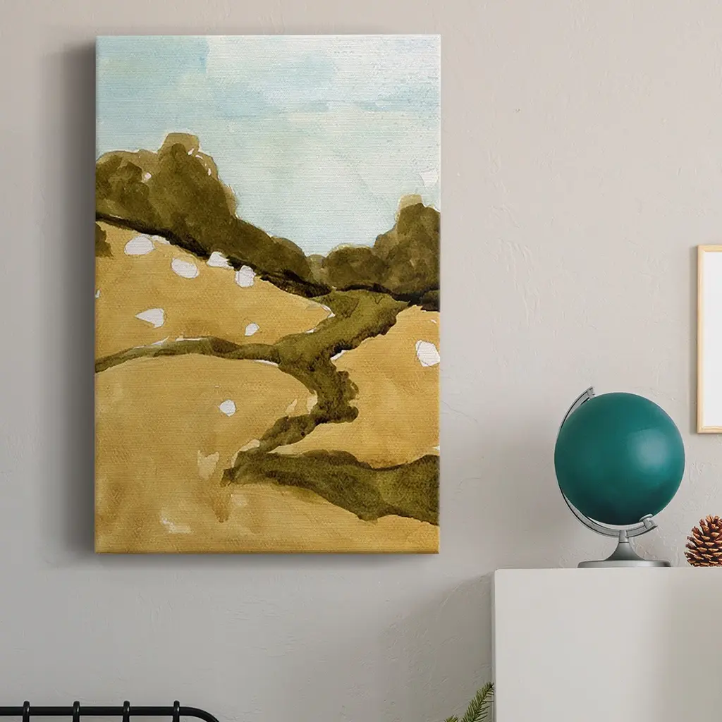 Scattered Sheep II Premium Gallery Wrapped Canvas - Ready to Hang A premium hand stretched gallery wrapped canvas print created to last. Featuring a beveled a solid wood stretcher bar, each piece comes ready to hand 6 SIZES AVAILABLE 8''X12'' - Overall Size 12''X18'' - Overall Size 18''X27'' - Overall Size 24''x36'' - Overall Size 32''x48'' - Overall Size 40''x60'' - Overall Size Each piece is made to order. Built to Last Each piece comes ready to hang Solid wood stretcher Fade and Water resistant Made domestically