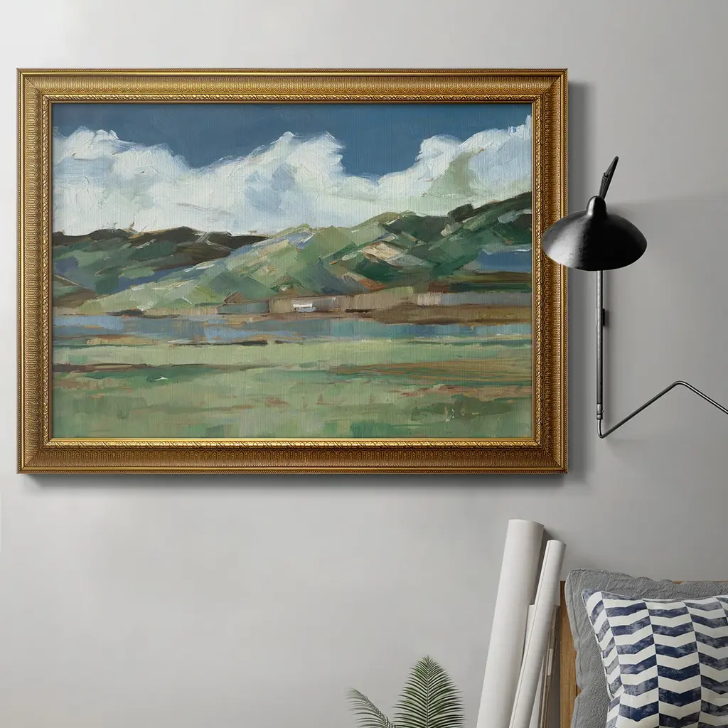 "Scenic Spring Landscape" Canvas Print In Thin Gold Frame