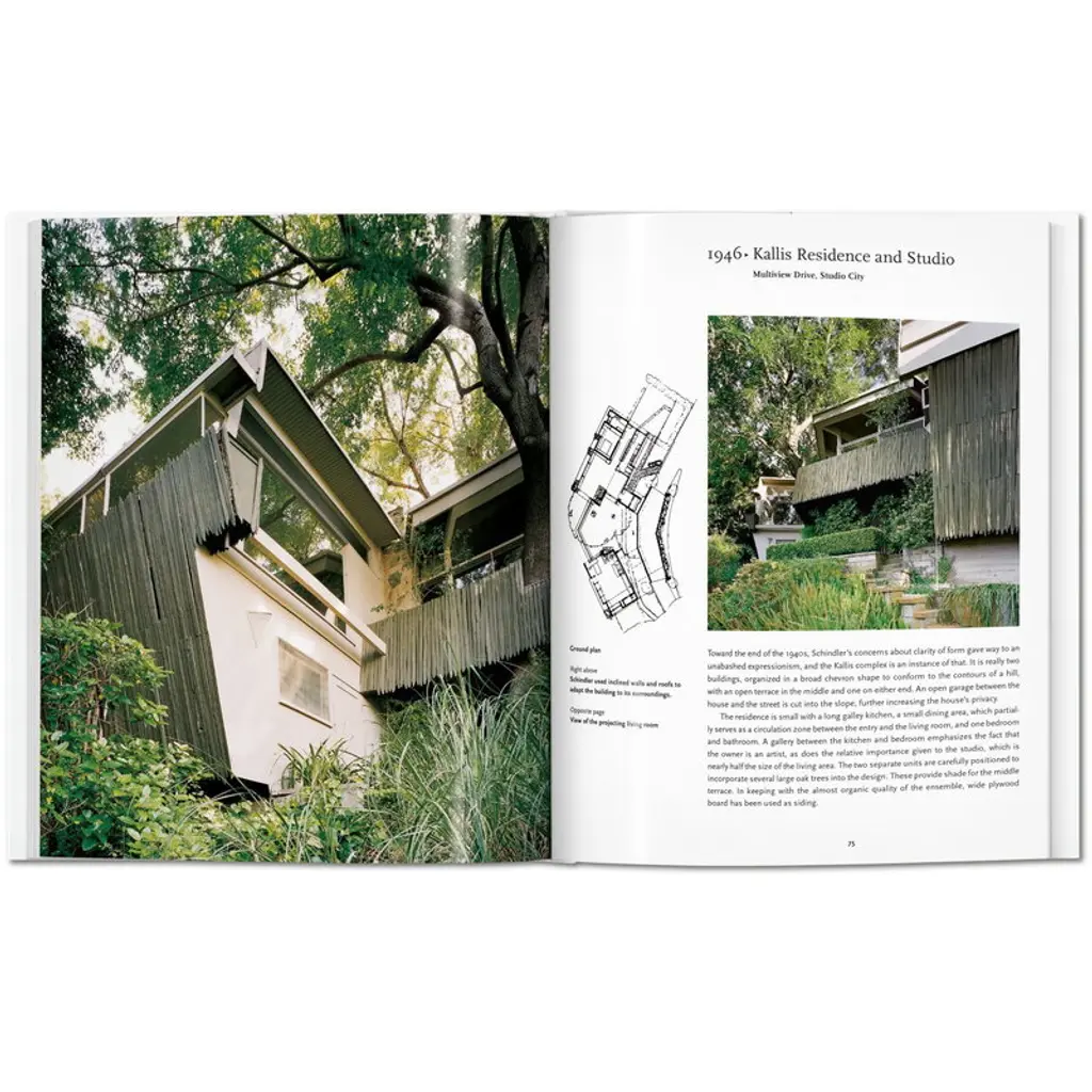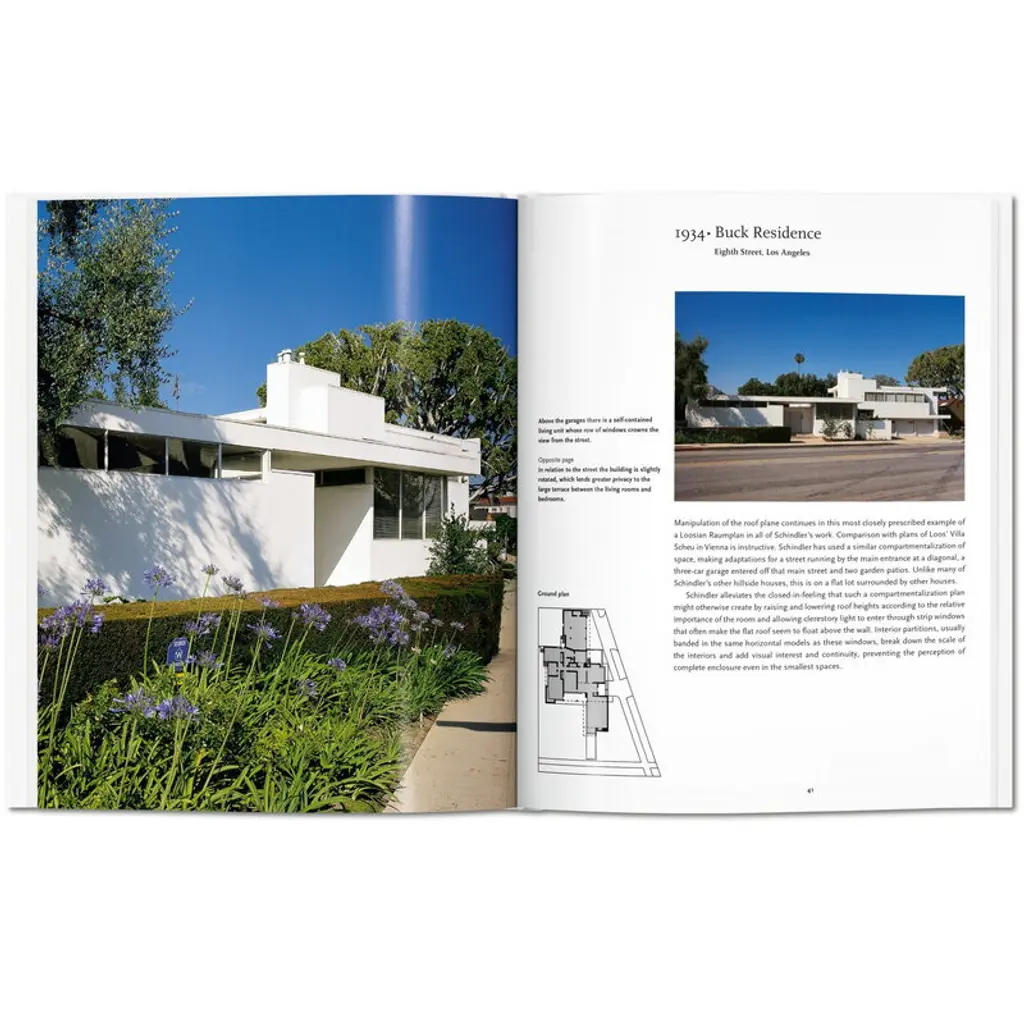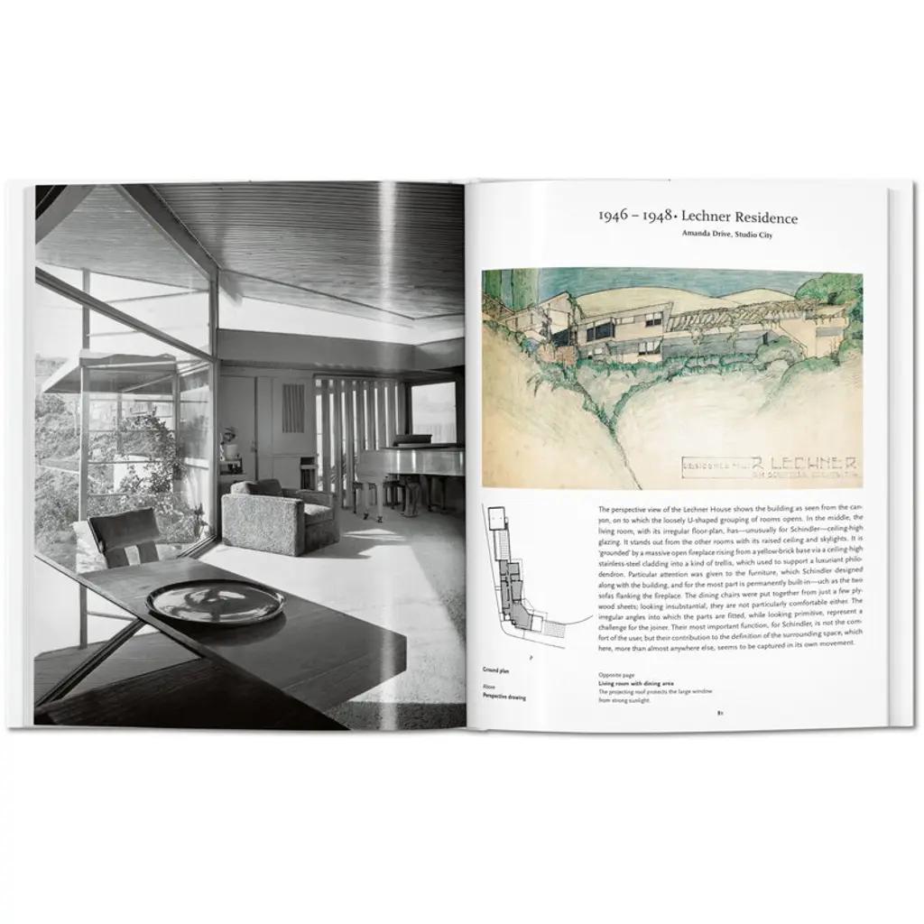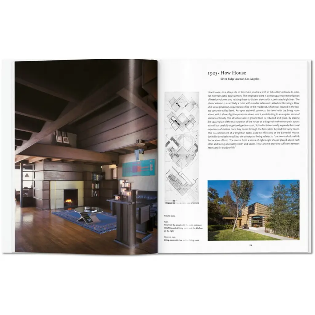 Published by Taschen, Schindler provides a compact insight into the career of architect Rudolph Michael Schindler (1887–1953). Austrian-born Schindler emigrated to the U.S., where he created pioneering works of modernist and cubist architecture, such as the Wolfe House and Falk Apartment Building. Written by architect James Steele, the book is part of Taschen's Basic Architecture series that presents life and work of internationally renowned architects with approximately 120 photographs, sketches and drafts. The series has been edited by German art historian Peter Gössel. Meet Rudolph Michael Schindler, the Austrian-born architect who combined Cubism, the International Style, and Californian Modernism into “space architecture.” Unnoticed for decades, his structures are today hailed as landmarks of the Modernist movement. This collection presents Schindler’s most important projects through crisp photography, floor plans, texts, and maps.