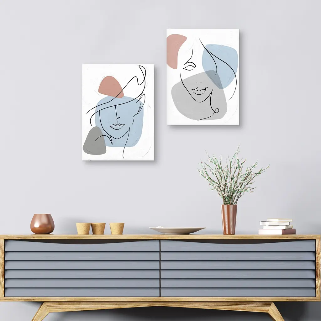 A freehand sketch, a splattering, or a splash of color all define the Italian word schizzo. A minimalist, abstract illustration of an object with accenting textured tones has an understated chicness and appeal. Schizzo Girl I & II canvas art print print by Studio Arts will tie together any room decor with an edgy twist.