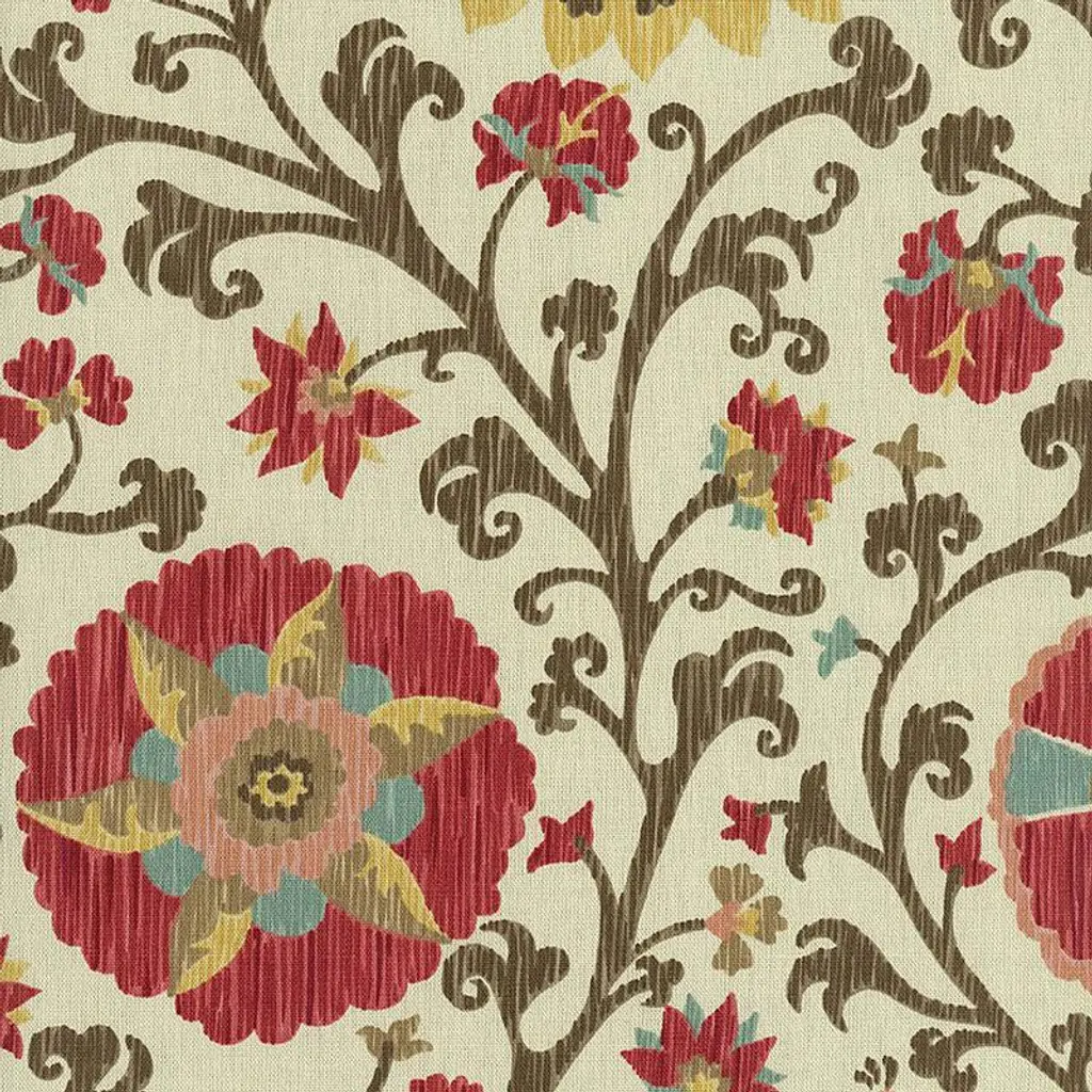 Schumacher Fergana Embroidery Print Fabric In Teak