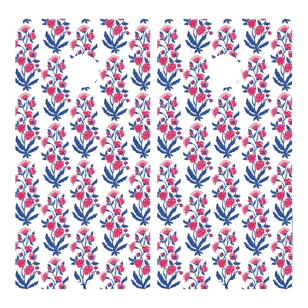 Schumacher Mia Tulip Fabric In Delft & Crimson