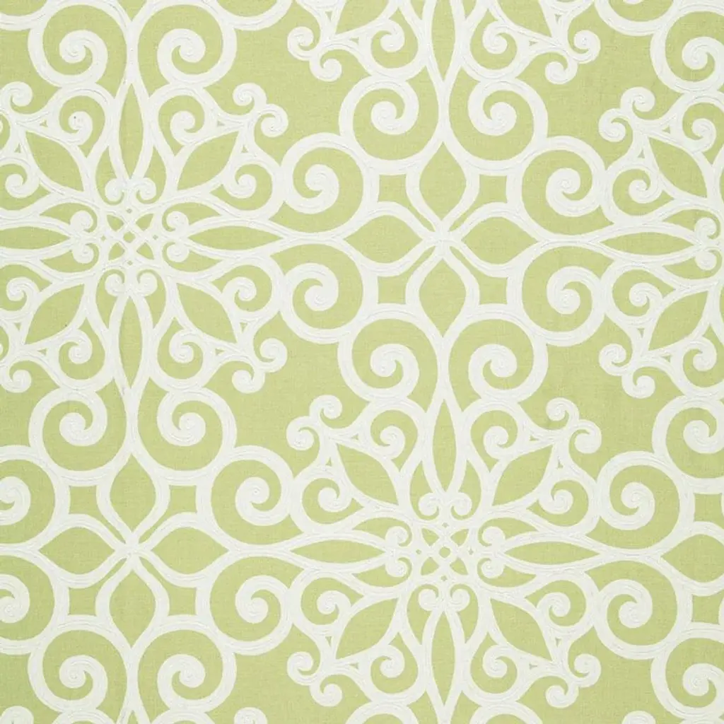Schumacher Rosegate Embroidered Print Fabric In Chartreuse