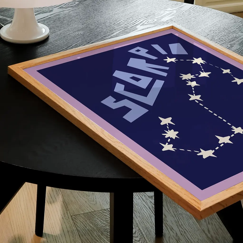 Scorpio Art Print - A2 sizeThis captivating artwork seamlessly blends astrology and art. Printed on high-quality paper, it's the perfect gift for a zodiac or a star sign horoscope enthusiast. All prints are digitally designed by myself and printed to order.Smooth fine art 230 gsm matte card. Printed with vivid colour and detail. Sold without a frame.