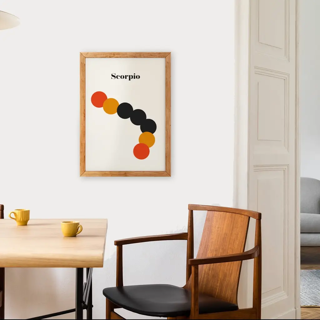 Scorpio Zodiac Star Sign retro inspired Art PrintPersonalise your space with our retro Inspired Zodiac Prints. Makes the perfect gift!Sold without frameGiclée printed on Munken pure smooth cream paper which is certified by the Rainforest Alliance Program for FSC® Standards.