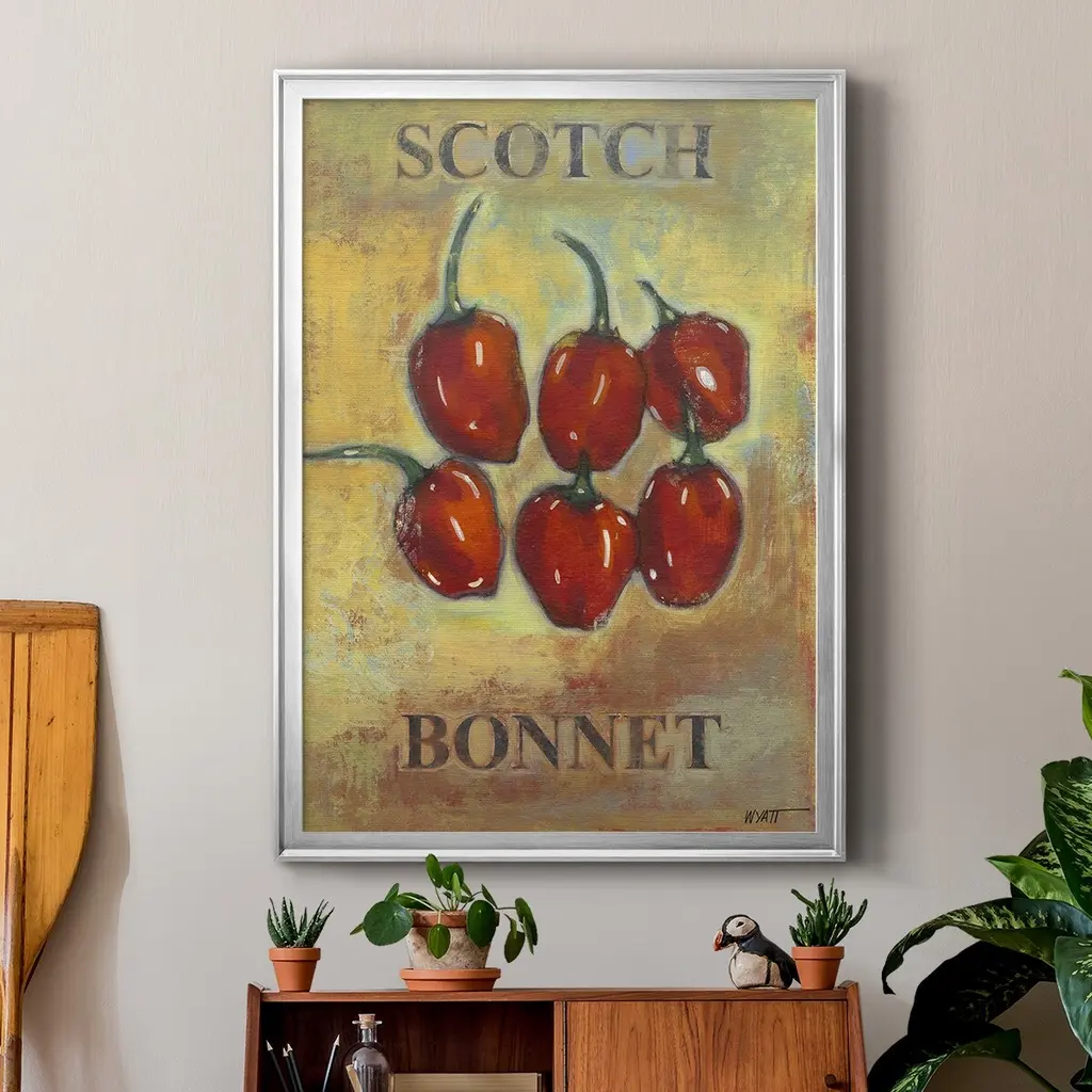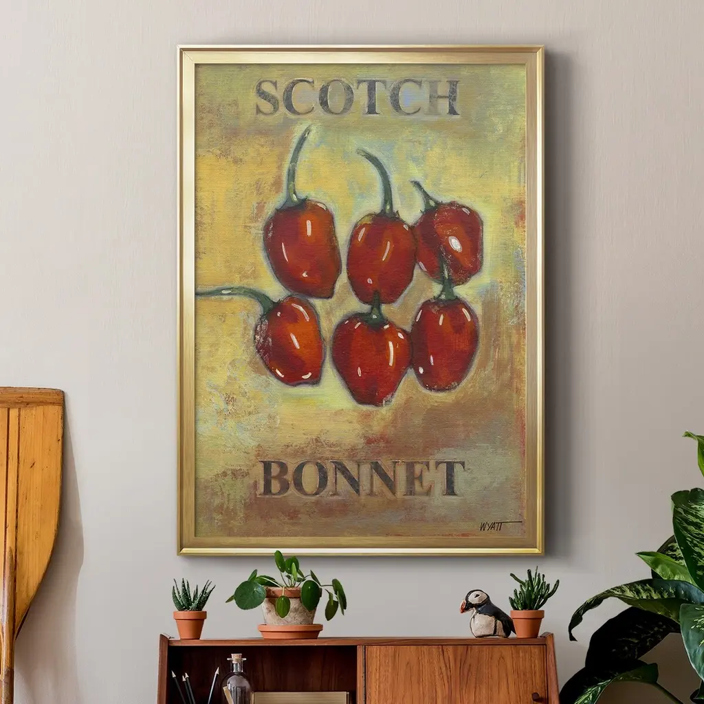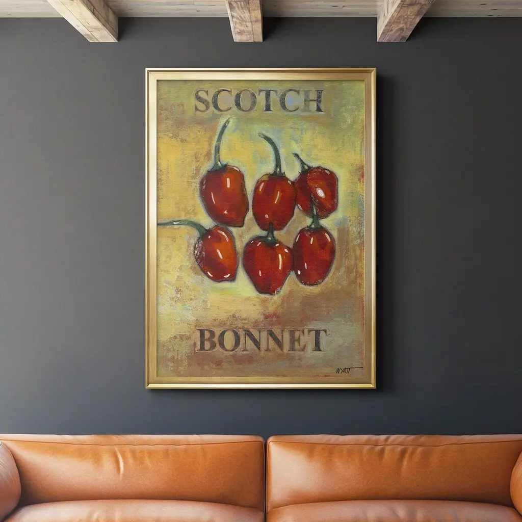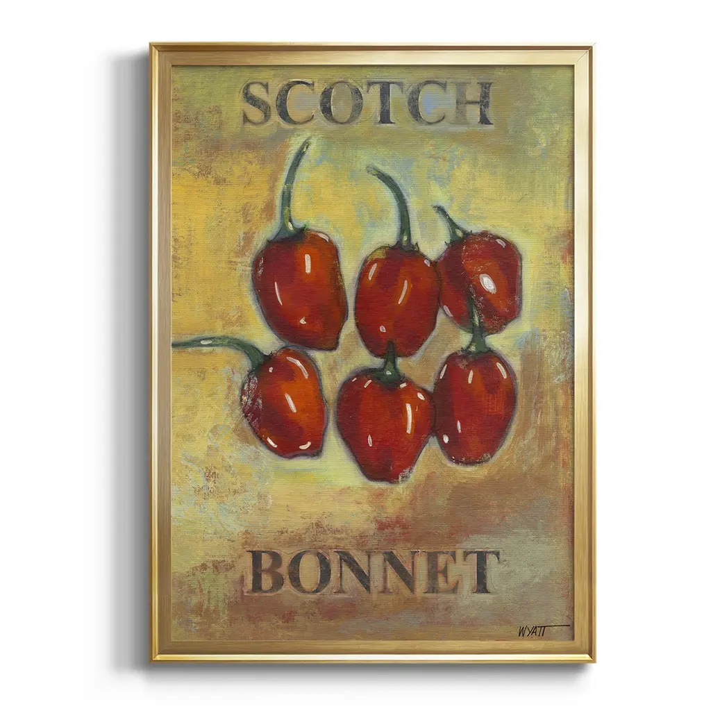 Scotch Bonnet Premium Framed Print - Ready to Hang A Premium Framed Print created to last. Framed in distressed wood and available in an array of sizes and colors Featuring a beveled a solid wood stretcher bar, each piece comes ready to hand 4 SIZES AVAILABLE 30.5''X42.5'' - Overall Size 26.5'X36.5'' - Overall Size 22.5''x30.5'' - Overall Size 18.5''x24.5'' - Overall Size Each piece is made to order. Each piece comes with hanging hardware. Made in the USA Ready to Hang