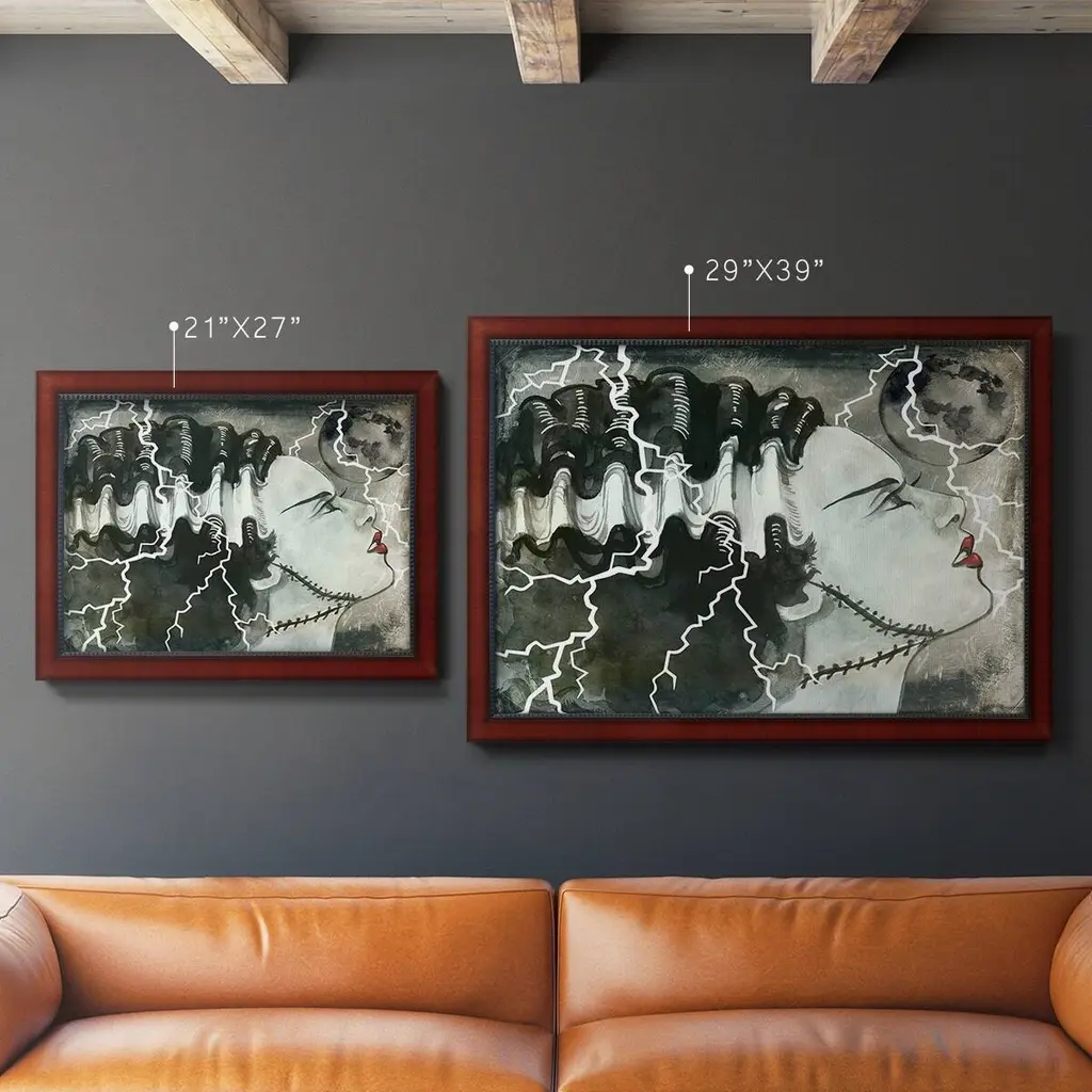 Scream Queens I Premium Framed Canvas- Ready to Hang A Premium Framed Canvas created to last. Framed in distressed wood and available in an array of sizes and colors Featuring a beveled a solid wood stretcher bar, each piece comes ready to hand 3 SIZES AVAILABLE 16''X20'' - Overall Size 18'X27'' - Overall Size 24''x36'' - Overall Size Each piece is made to order. Each piece comes with hanging hardware. Made in the USA Ready to Hang Giclee Paper Print Acrylic Glass Beveled Matt Board