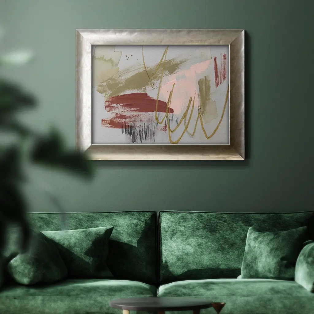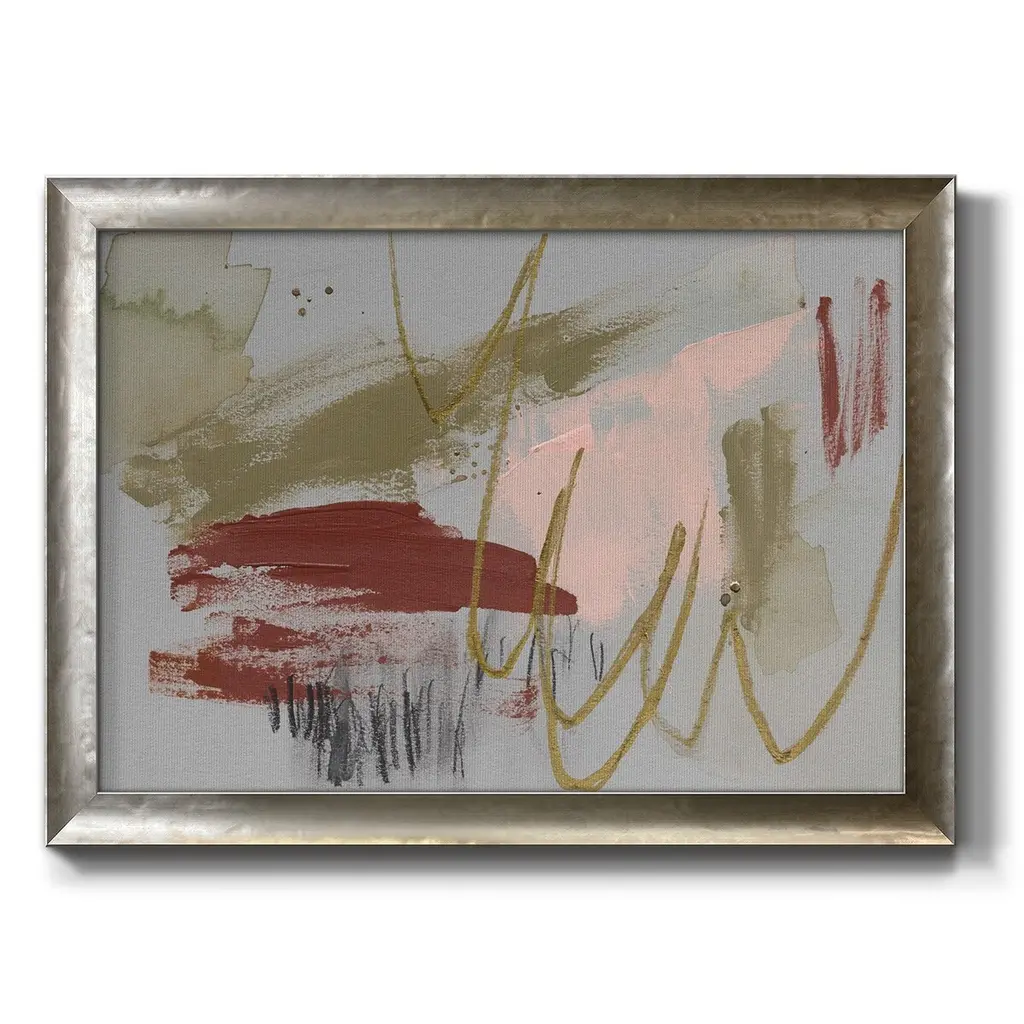 Scribbles & Paint I Premium Framed Canvas- Ready to Hang A Premium Framed Canvas created to last. Framed in distressed wood and available in an array of sizes and colors Featuring a beveled a solid wood stretcher bar, each piece comes ready to hand 3 SIZES AVAILABLE 16''X20'' - Overall Size 18'X27'' - Overall Size 24''x36'' - Overall Size Each piece is made to order. Each piece comes with hanging hardware. Made in the USA Ready to Hang Giclee Paper Print Acrylic Glass Beveled Matt Board