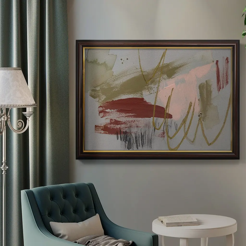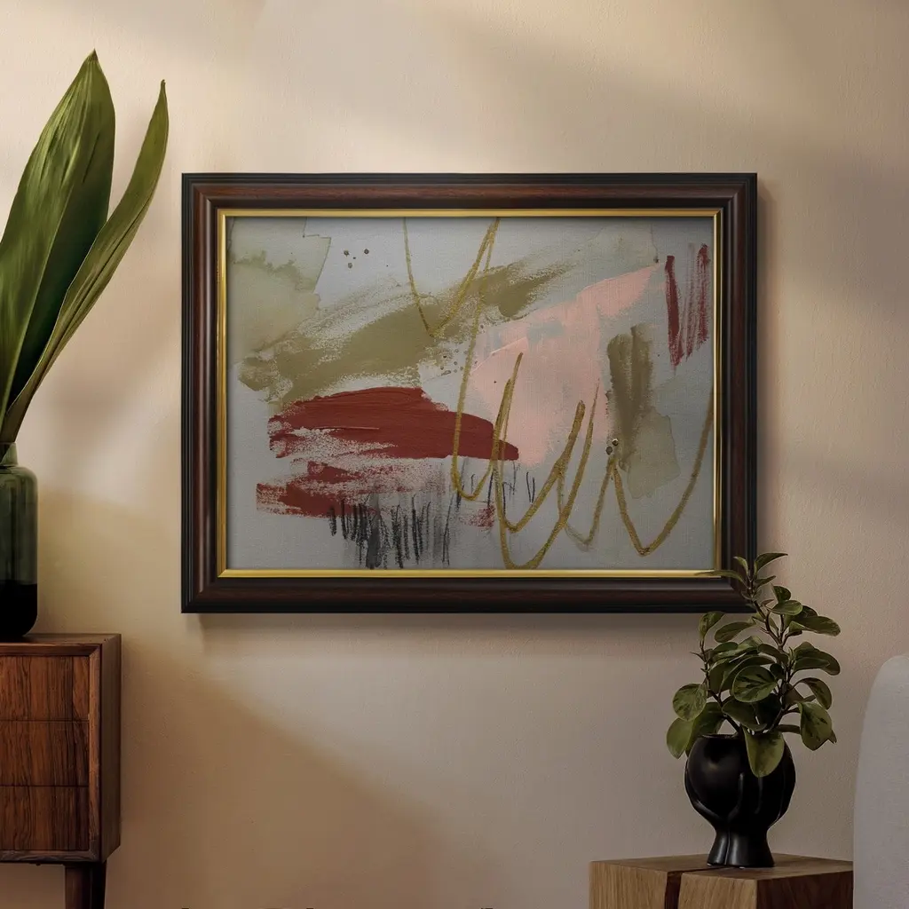 Scribbles & Paint I Premium Framed Canvas- Ready to Hang A Premium Framed Canvas created to last. Framed in distressed wood and available in an array of sizes and colors Featuring a beveled a solid wood stretcher bar, each piece comes ready to hand 3 SIZES AVAILABLE 16''X20'' - Overall Size 18'X27'' - Overall Size 24''x36'' - Overall Size Each piece is made to order. Each piece comes with hanging hardware. Made in the USA Ready to Hang Giclee Paper Print Acrylic Glass Beveled Matt Board