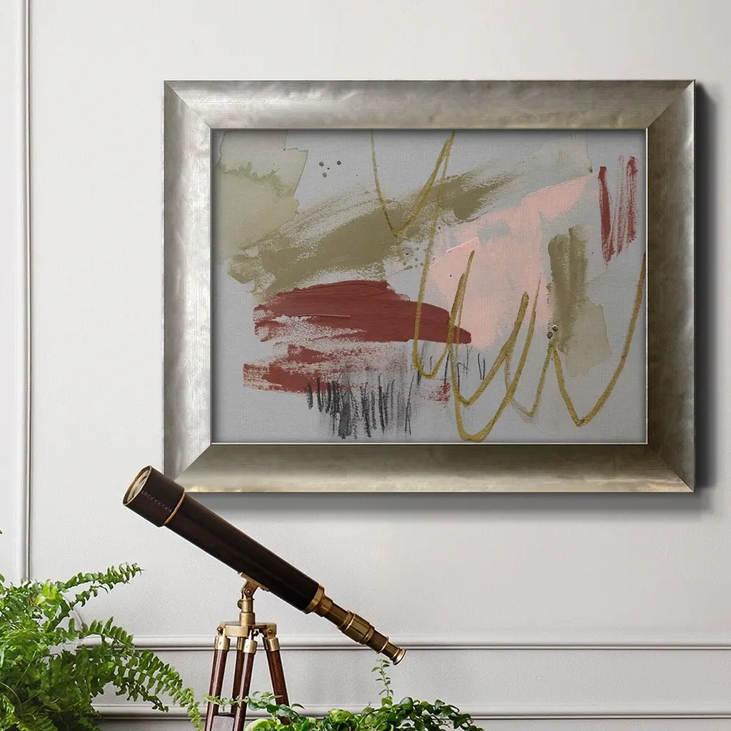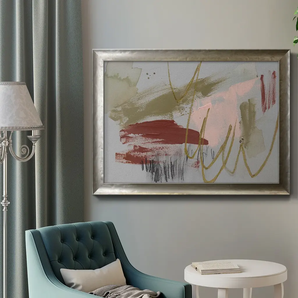 Scribbles & Paint I Premium Framed Canvas- Ready to Hang A Premium Framed Canvas created to last. Framed in distressed wood and available in an array of sizes and colors Featuring a beveled a solid wood stretcher bar, each piece comes ready to hand 3 SIZES AVAILABLE 16''X20'' - Overall Size 18'X27'' - Overall Size 24''x36'' - Overall Size Each piece is made to order. Each piece comes with hanging hardware. Made in the USA Ready to Hang Giclee Paper Print Acrylic Glass Beveled Matt Board