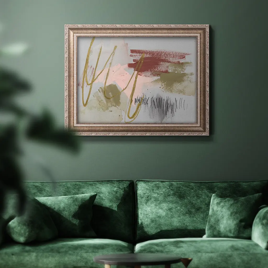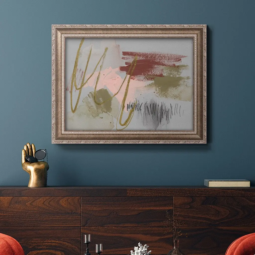 Scribbles & Paint II Premium Framed Canvas- Ready to Hang A Premium Framed Canvas created to last. Framed in distressed wood and available in an array of sizes and colors Featuring a beveled a solid wood stretcher bar, each piece comes ready to hand 3 SIZES AVAILABLE 16''X20'' - Overall Size 18'X27'' - Overall Size 24''x36'' - Overall Size Each piece is made to order. Each piece comes with hanging hardware. Made in the USA Ready to Hang Giclee Paper Print Acrylic Glass Beveled Matt Board
