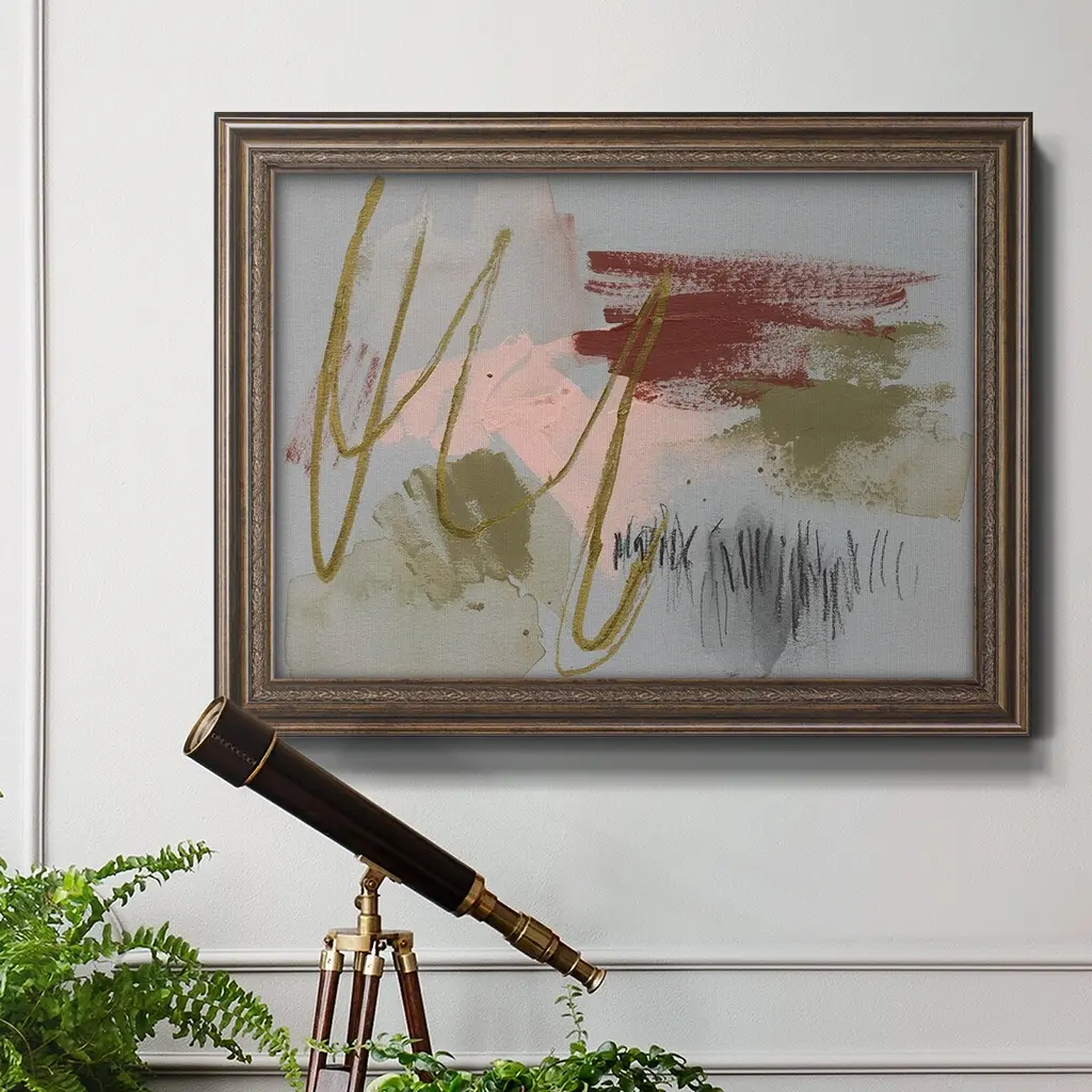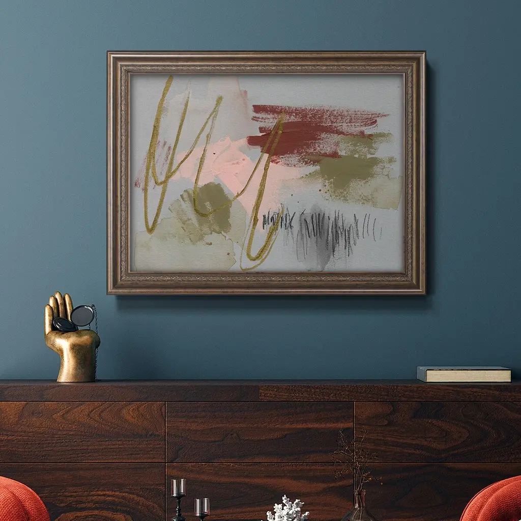 Scribbles & Paint II Premium Framed Canvas- Ready to Hang A Premium Framed Canvas created to last. Framed in distressed wood and available in an array of sizes and colors Featuring a beveled a solid wood stretcher bar, each piece comes ready to hand 3 SIZES AVAILABLE 16''X20'' - Overall Size 18'X27'' - Overall Size 24''x36'' - Overall Size Each piece is made to order. Each piece comes with hanging hardware. Made in the USA Ready to Hang Giclee Paper Print Acrylic Glass Beveled Matt Board
