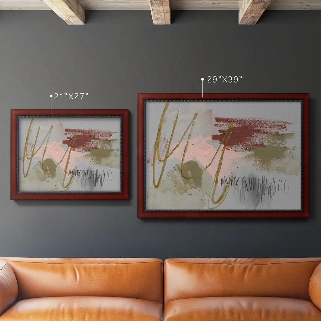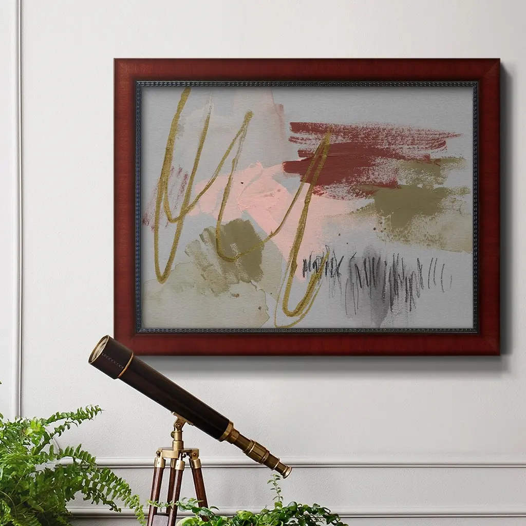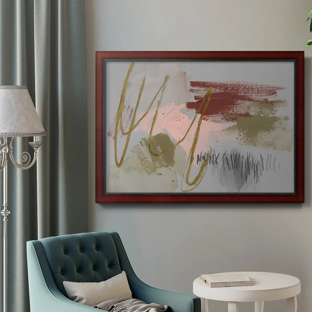 Scribbles & Paint II Premium Framed Canvas- Ready to Hang A Premium Framed Canvas created to last. Framed in distressed wood and available in an array of sizes and colors Featuring a beveled a solid wood stretcher bar, each piece comes ready to hand 3 SIZES AVAILABLE 16''X20'' - Overall Size 18'X27'' - Overall Size 24''x36'' - Overall Size Each piece is made to order. Each piece comes with hanging hardware. Made in the USA Ready to Hang Giclee Paper Print Acrylic Glass Beveled Matt Board