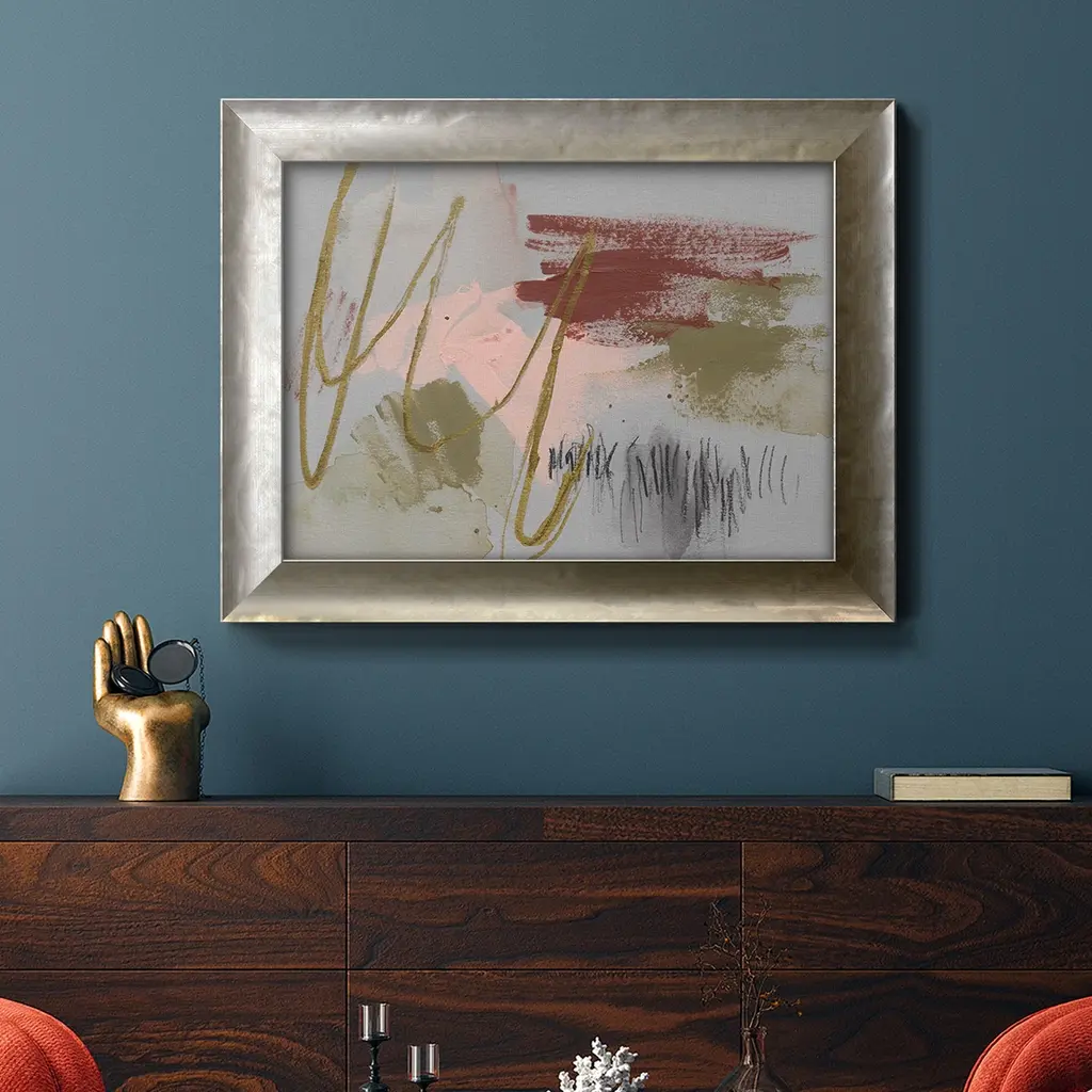 Scribbles & Paint II Premium Framed Canvas- Ready to Hang A Premium Framed Canvas created to last. Framed in distressed wood and available in an array of sizes and colors Featuring a beveled a solid wood stretcher bar, each piece comes ready to hand 3 SIZES AVAILABLE 16''X20'' - Overall Size 18'X27'' - Overall Size 24''x36'' - Overall Size Each piece is made to order. Each piece comes with hanging hardware. Made in the USA Ready to Hang Giclee Paper Print Acrylic Glass Beveled Matt Board