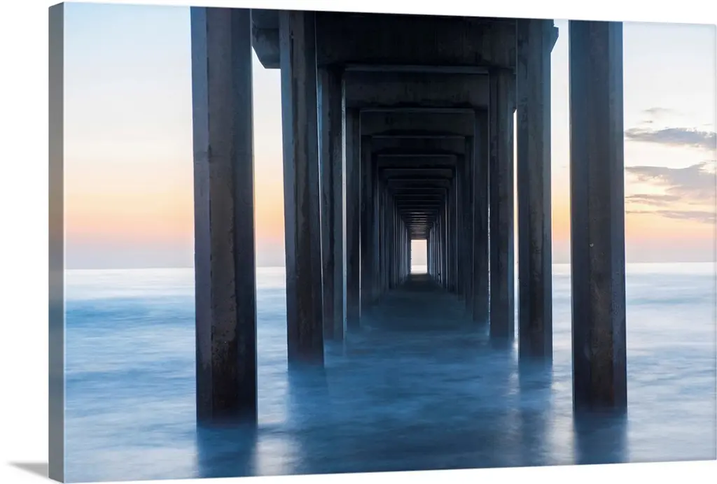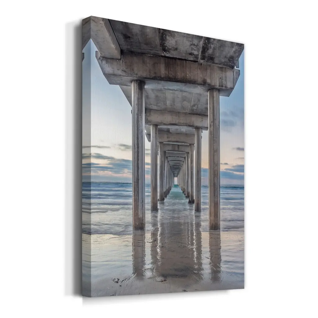 Scripps Pier Premium Gallery Wrapped Canvas - Ready to Hang A premium hand stretched gallery wrapped canvas print created to last. Featuring a beveled a solid wood stretcher bar, each piece comes ready to hand 5 SIZES AVAILABLE 8''X12'' - Overall Size 16'X20'' - Overall Size 24''x32'' - Overall Size 30''x40'' - Overall Size 36''x48'' - Overall Size Each piece is made to order. Built to Last Each piece comes ready to hang Solid wood stretcher Fade and Water resistant Made domestically