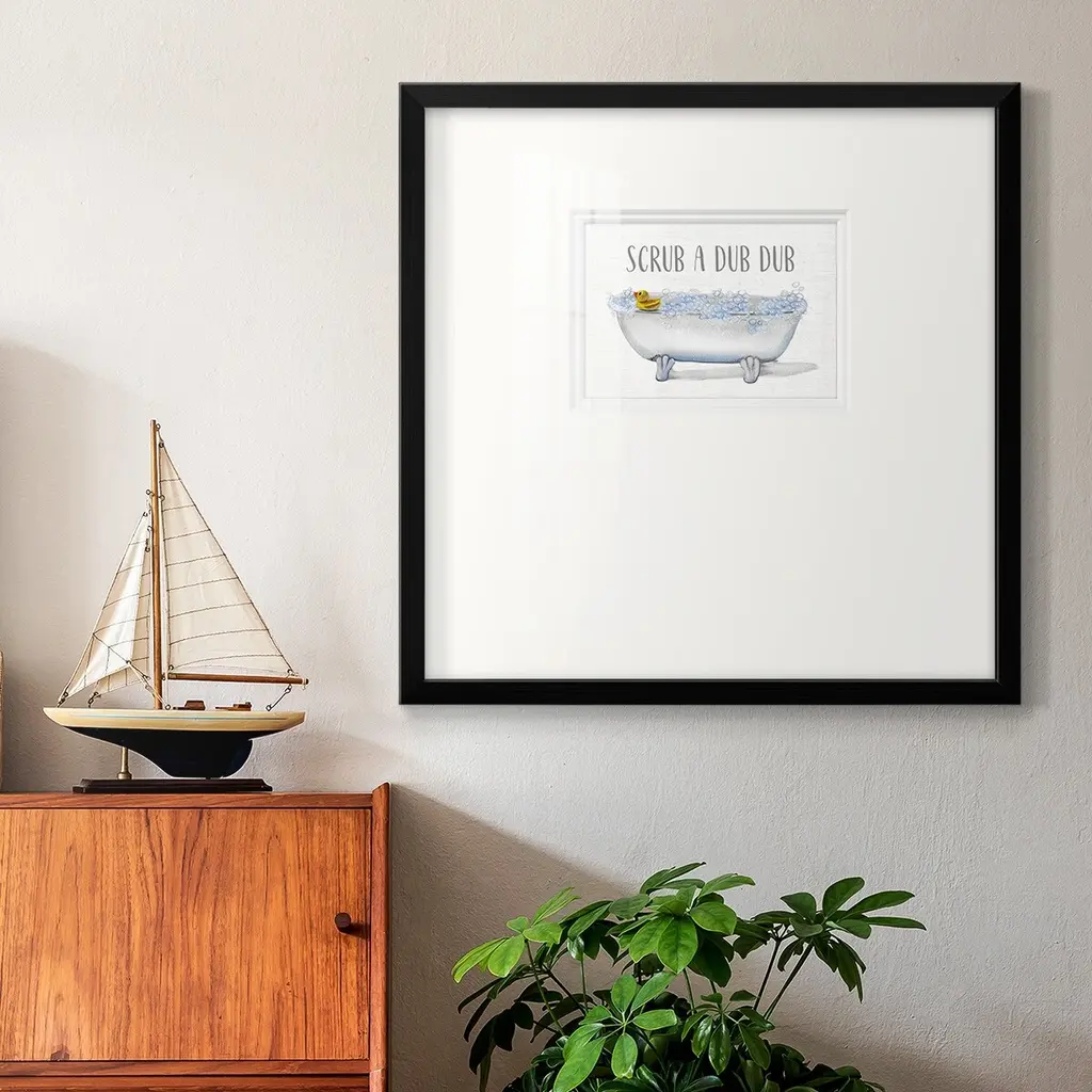 Scrub a DubPremium Framed Print A framed cold pressed paper print featuring superior double matting and quality frame. 2 SIZES AVAILABLE 16''X16''' - Overall Size 20''X20''' - Overall Size Each piece is made to order. Each piece comes with hanging hardware. Made in the USA Ready to Hang Giclee Paper Print Plexiglass Beveled Matt Board Double Matte Board