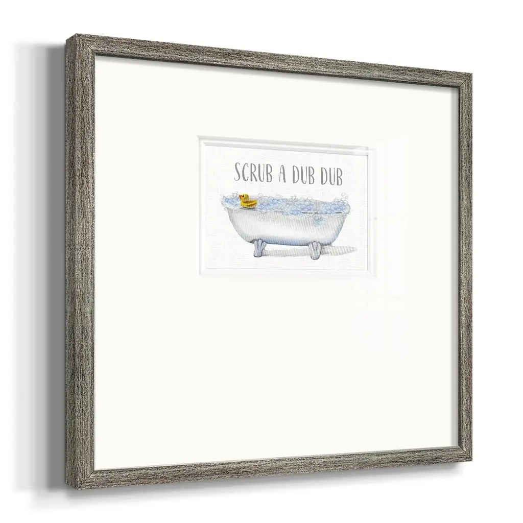 Scrub a DubPremium Framed Print A framed cold pressed paper print featuring superior double matting and quality frame. 2 SIZES AVAILABLE 16''X16''' - Overall Size 20''X20''' - Overall Size Each piece is made to order. Each piece comes with hanging hardware. Made in the USA Ready to Hang Giclee Paper Print Plexiglass Beveled Matt Board Double Matte Board