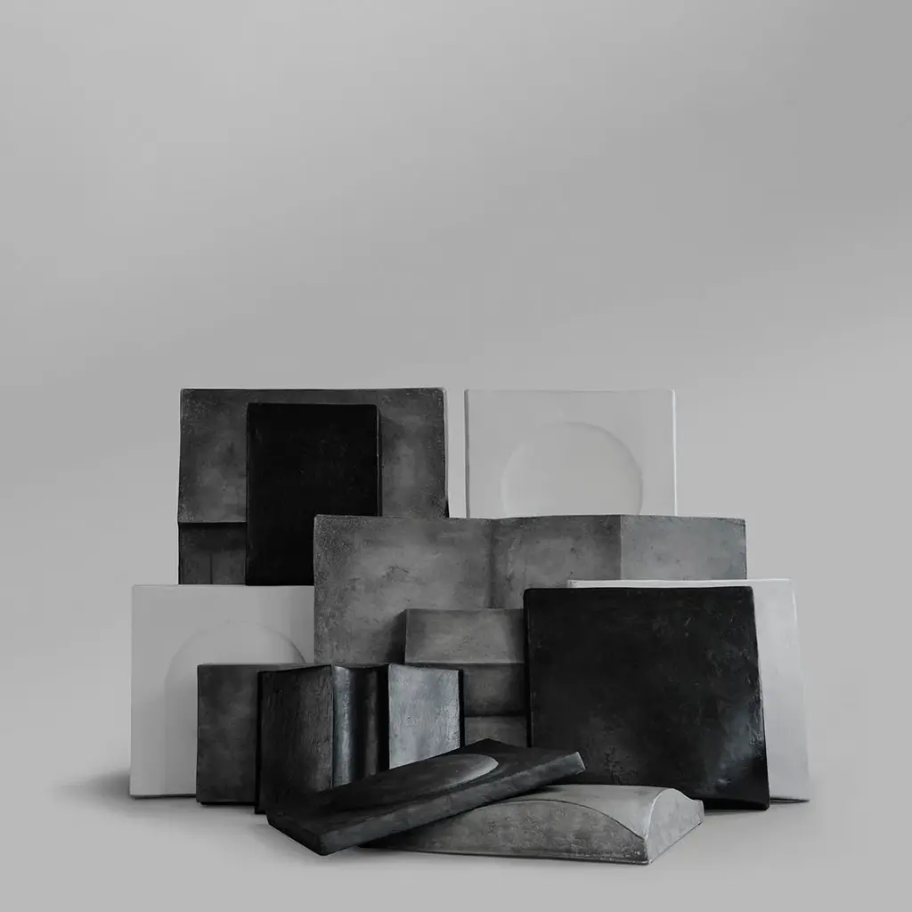 The Sculpt Art collection is a series of reliefs for hanging on the wall as pure artistic intentions. The sculptural pieces pull their inspiration from brutalist architecture details, design history and concrete as a surface and material in American Minimalist art of the 1960s. Each piece is handmade from a sustainable concrete-like material of recycled newspapers, sand and chalk powder, combining artistic work with sustainable production methods. The Sculpt Wall series can easily be hung on a wall with screws and brackets on the backside. Designed by Kristian Sofus Hansen & Tommy Hyldahl.