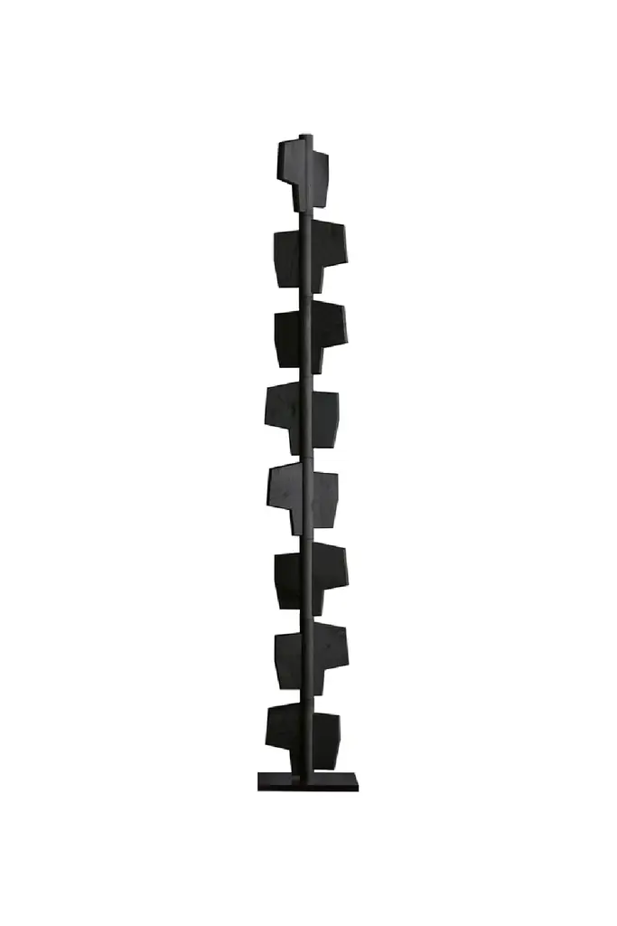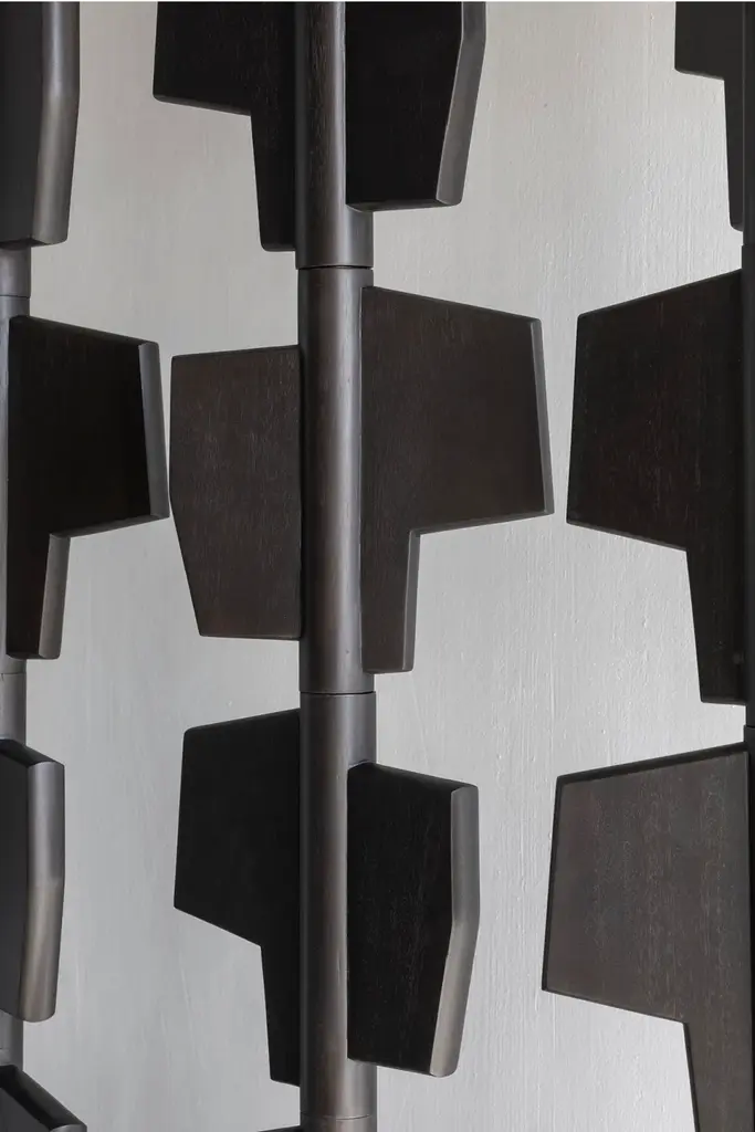 This room divider screen is composed of wooden modules sliding over a patinated steel rod and base. It is both a sculptural and functional art piece. Available in sycamore and mahogany, as well as a limited-edition rosewood. A complete Claustra is composed of five totems or more according to your needs and the space.