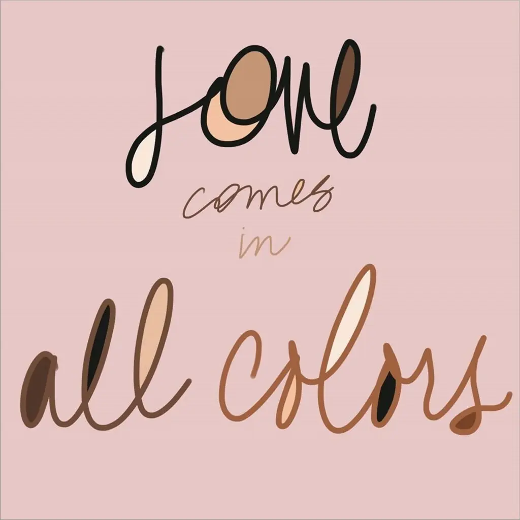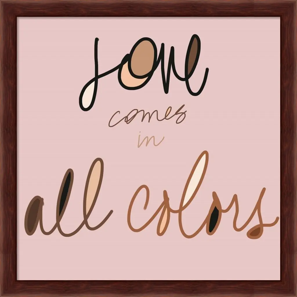 Love Comes In All Colors by SD Graphics Studio is a high quality piece of framed artwork. The finished size of this piece is 13.25" X 13.25" with an image size of 12" X 12". It has a Mahogany Deep Box frame and is finished with high quality glass. 100% Satisfaction Guaranteed.