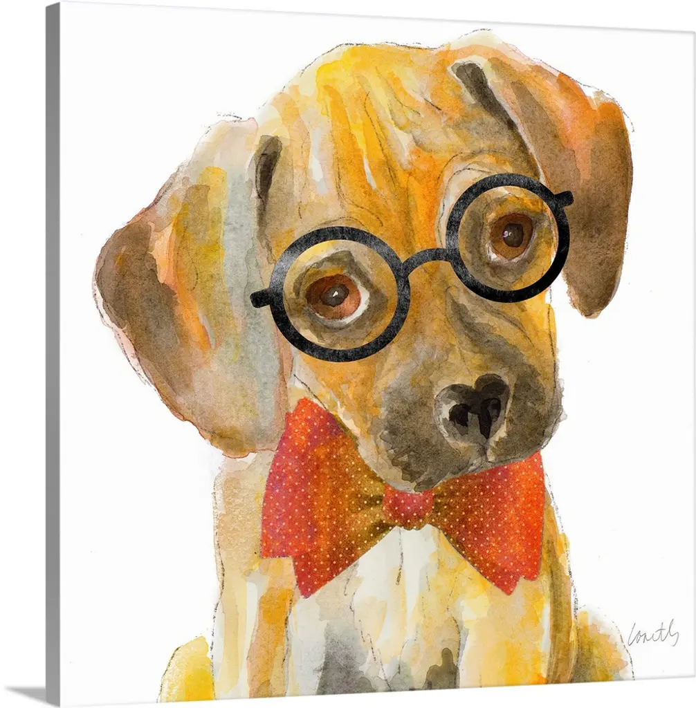 Studious Pup by SD Graphics Studio is a high quality piece of canvas artwork. The finished size of this piece is 12" X 12", and it has a depth 1.5" with black painted sides. There is a UV protective coating over the entire image, and it is ready to hang on your wall with no hardware required. 100% Satisfaction Guaranteed.