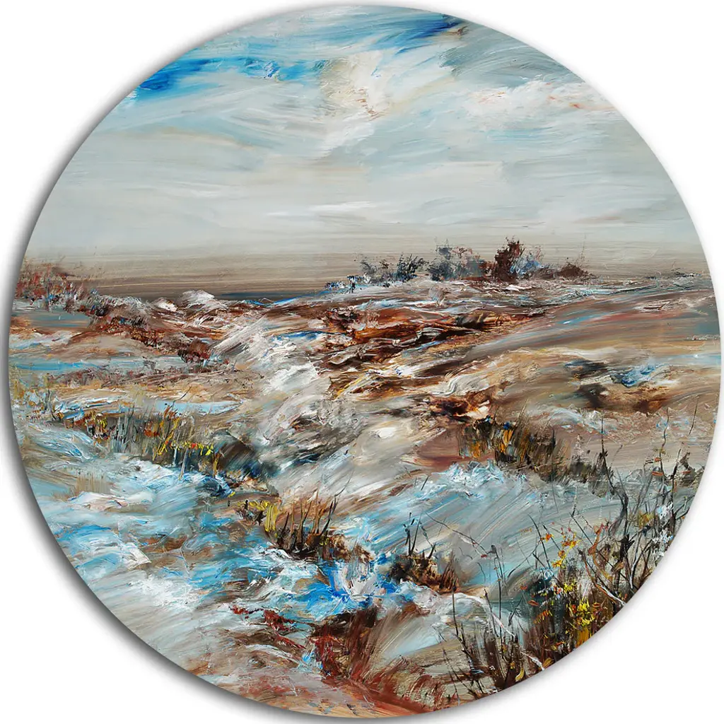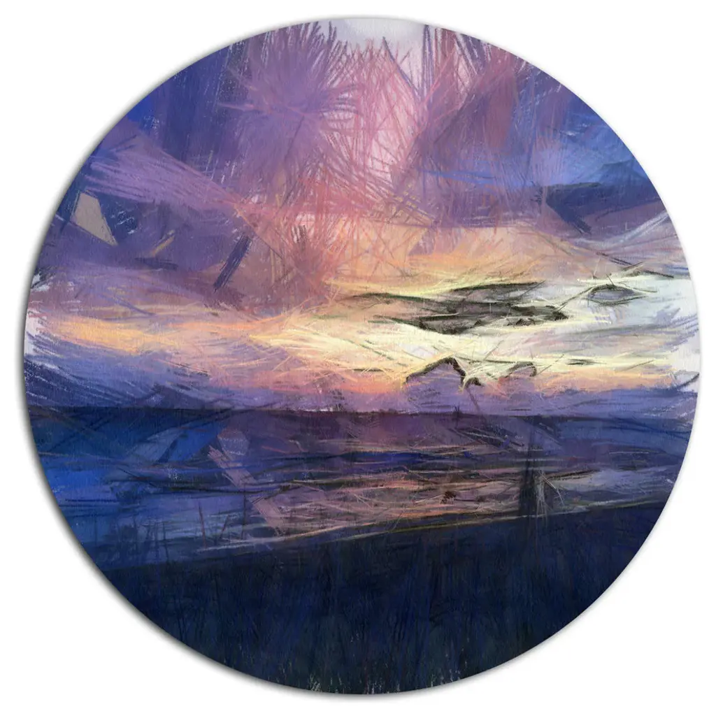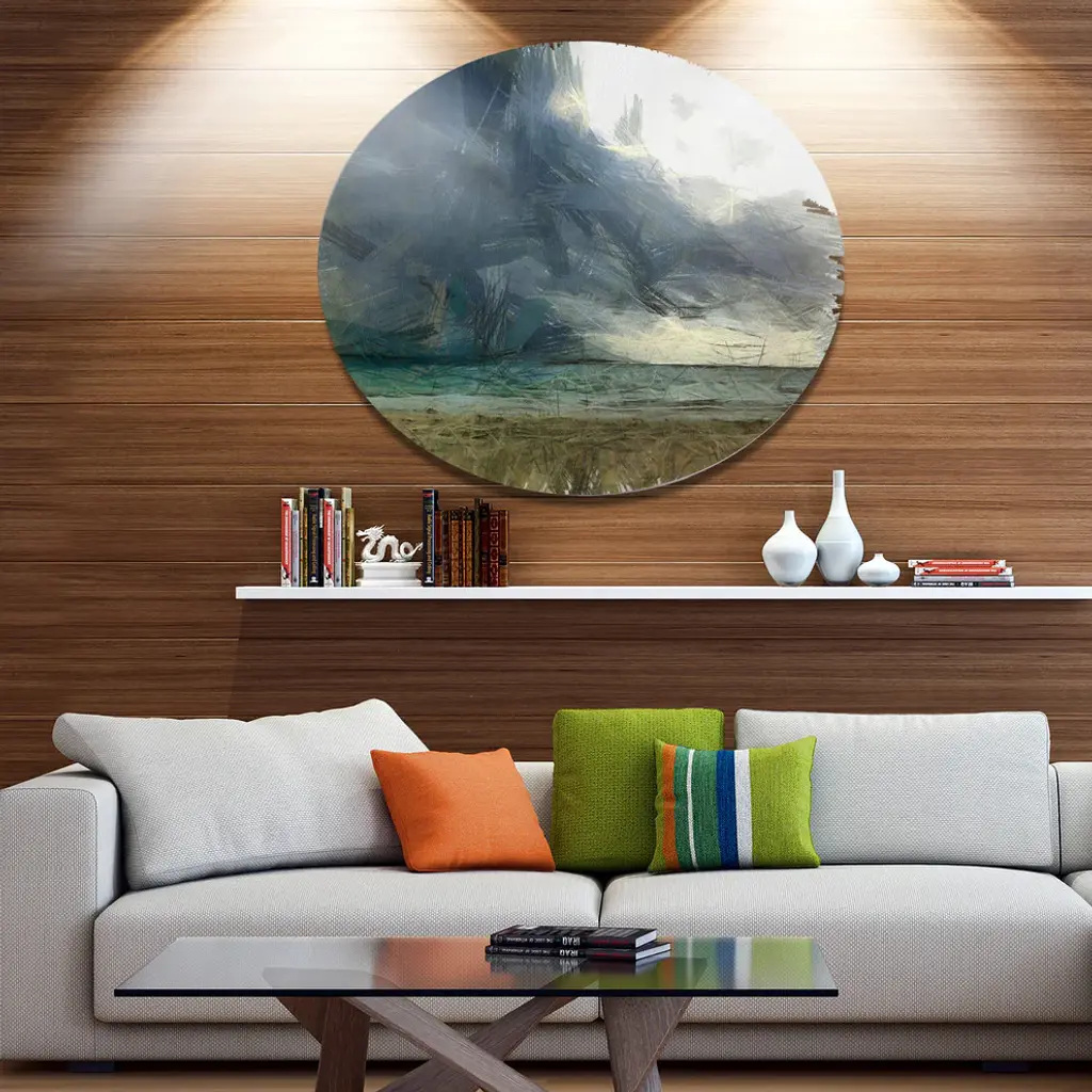 Bring Contemporary Abstraction to your home with this large Circle Metal wall art. This Sea before Storm Watercolor Metal Artwork makes it the focal point of any room or office. - White Gloss Coating ensures colors are extra vibrant with light reflection.- Aluminum grade Sheet Metal with 1 inch mounting frame on the back giving the illusion that the artwork is floating on the wall..- Mounting Brackets are included along with instructions.- High Quality Digital images are created directly into a glossy aluminum panel producing a stunning and captivating print into the glossy finish of the metal.- Water, Fire and Scratch resistant HD Aluminum panels.- Looks better than any photo paper and guaranteed to last at least 20 years- Easy to clean with a microfiber cloth. Colors are far superior to regular Canvas Art. - Easy to Hang