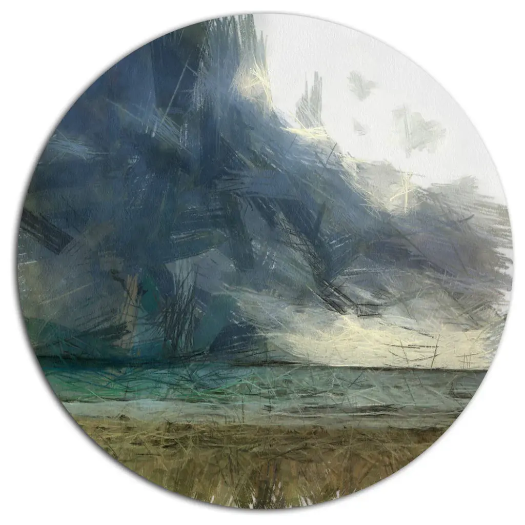Sea Before Storm Watercolor, Landscape Round Wall Art, 23"