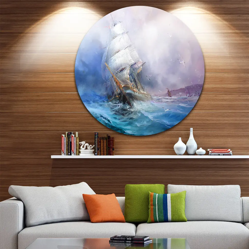 Sea Breeze, Seascape Painting Round Metal Wall Art, 11"