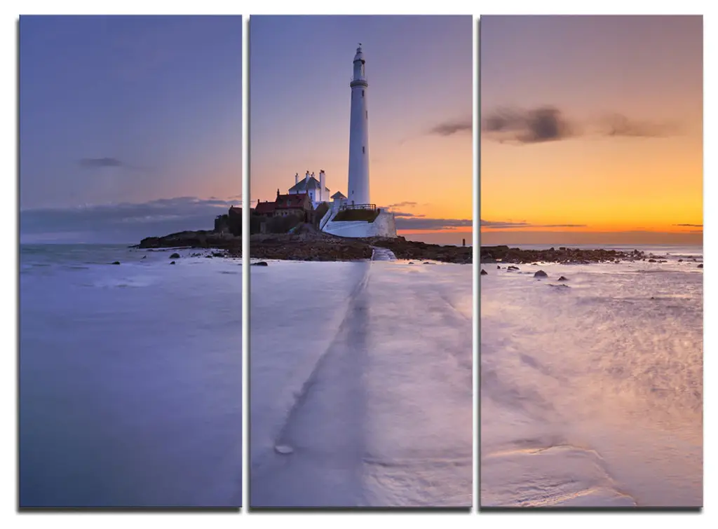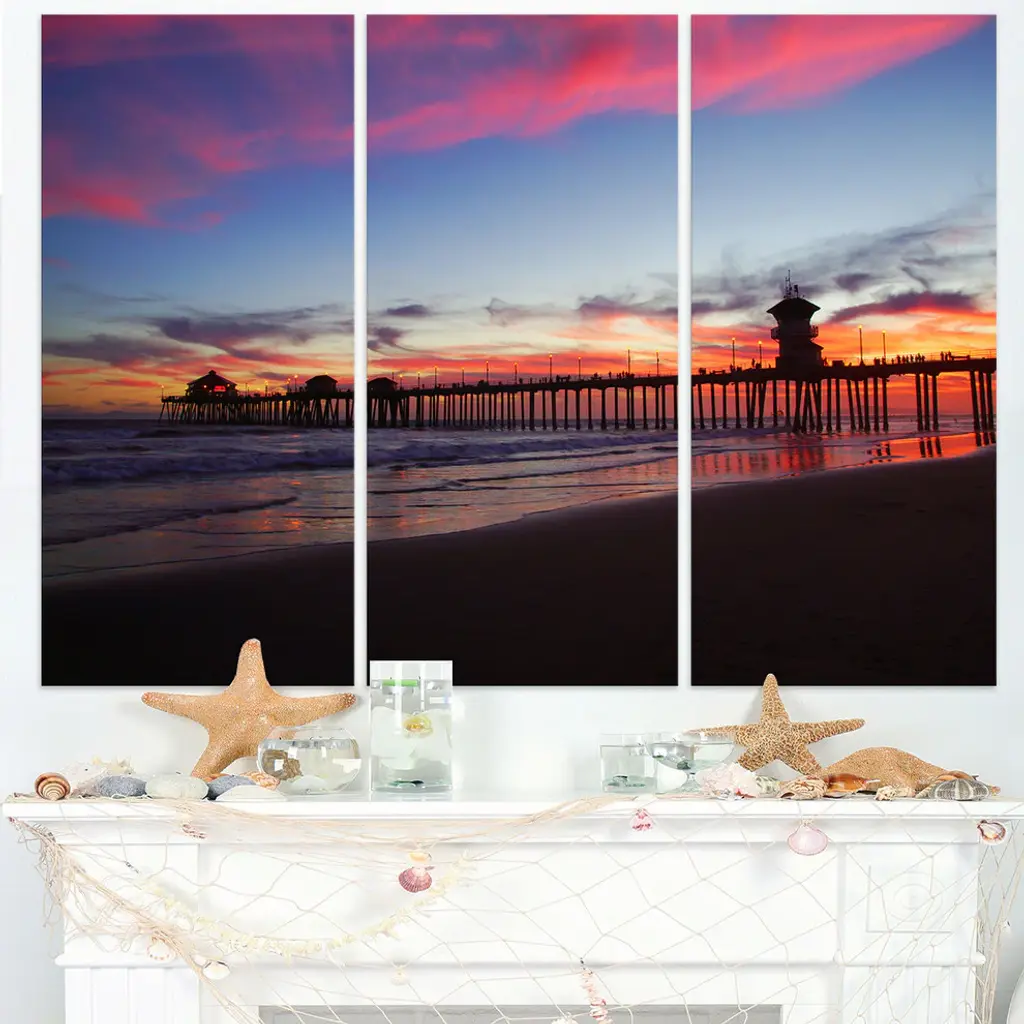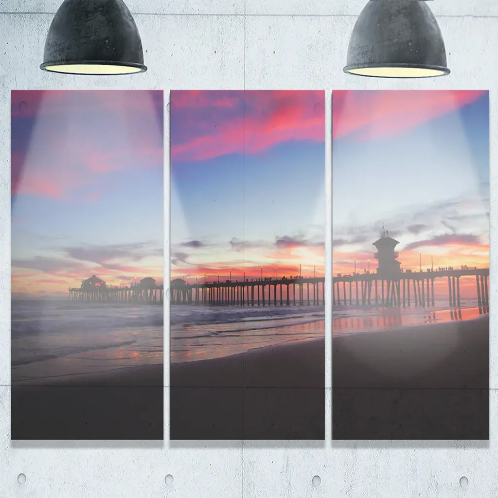 "Sea Bridge In California With Red Clouds" Metal Wall Art, 3 Panels, 36"x28"