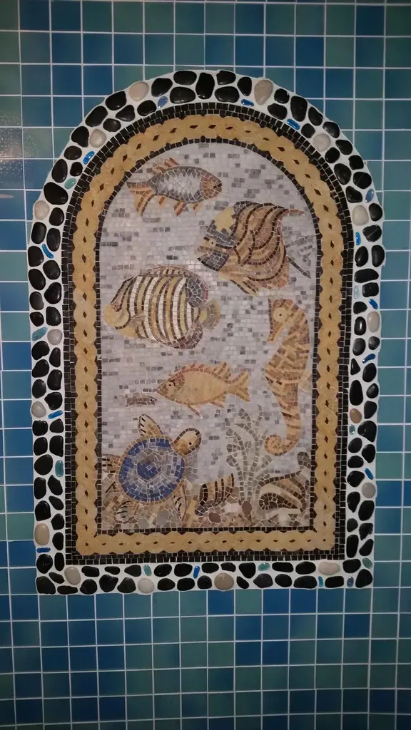 Dive into the enchanting world of the ocean with our stunning "Sea Creatures Mosaic." This exquisite handmade marble mosaic captures the beauty and tranquility of an underwater aquarium, meticulously crafted from all-natural stones and hand-cut tiles. Each piece is thoughtfully arranged to create a captivating scene filled with vibrant sea life, allowing you to bring a touch of the ocean into your home.At the heart of this mosaic, you'll discover a charming sea turtle gracefully gliding across the sandy bottom, surrounded by a lively ensemble of fish and a whimsical sea horse. The intricate details and vivid colors of each creature come together to create a mesmerizing display that will instantly transform any space into an aquatic haven. The combination of textures and hues reflects the stunning diversity of the marine world, making this artwork not just a decorative piece, but a conversation starter as well.Ideal for regions with a nautical theme, our "Sea Creatures Mosaic" brings an ocean-like atmosphere to any room, whether it's your living area, bathroom, or even a cozy study. The natural stones used in this mosaic lend a timeless elegance, ensuring that it will complement various decor styles from modern to rustic.This mosaic is not only a feast for the eyes, but it also embodies the craftsmanship and dedication of skilled artisans who pour their hearts into each creation. Every piece is unique, showcasing the natural variations in stone and tile, which means your mosaic will be one of a kind.Enhance your space with the calming presence of marine life and let the "Sea Creatures Mosaic" serve as a daily reminder of the beauty of the ocean. Perfect as a gift for ocean lovers or as a stunning addition to your own home, this mosaic will inspire relaxation and joy for years to come. Embrace the tranquil spirit of the sea and order your own "Sea Creatures Mosaic" today!